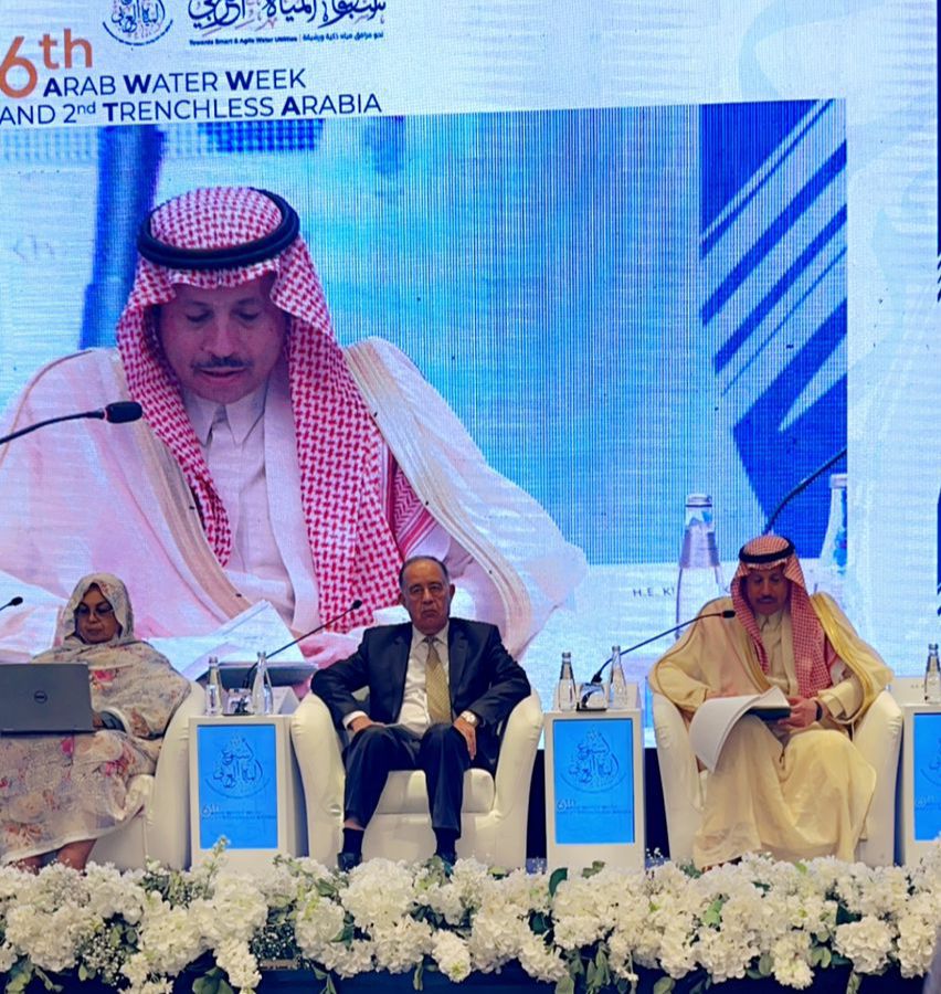وقال السفير السديري إن الاحتفاء بأسبوع المياه العربي، وإقامة مثل هذا المؤتمر الذي يُعنى بتنفيذ المشاريع بدون حفر تحت عنوان “نحو مرافق مياه ذكية ورشيقة”، و الرعاية الكريمة لهذا المؤتمر من لدن صاحب السمو الملكي الأمير الحسن بن طلال – يحفظه الله- يؤكد المؤكد حول الأهمية الحيوية الكبرى والبالغة الحساسية بشأن أمن المياه، لا سيما وأن منطقتنا العربية تعد من أكثر المناطق شحاً بالمياه.