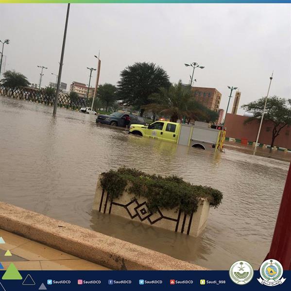 الجهات الحكومية تستنفر في “حفر الباطن”.. والدفاع المدني ينقذ 44 شخصاً جراء الأمطار