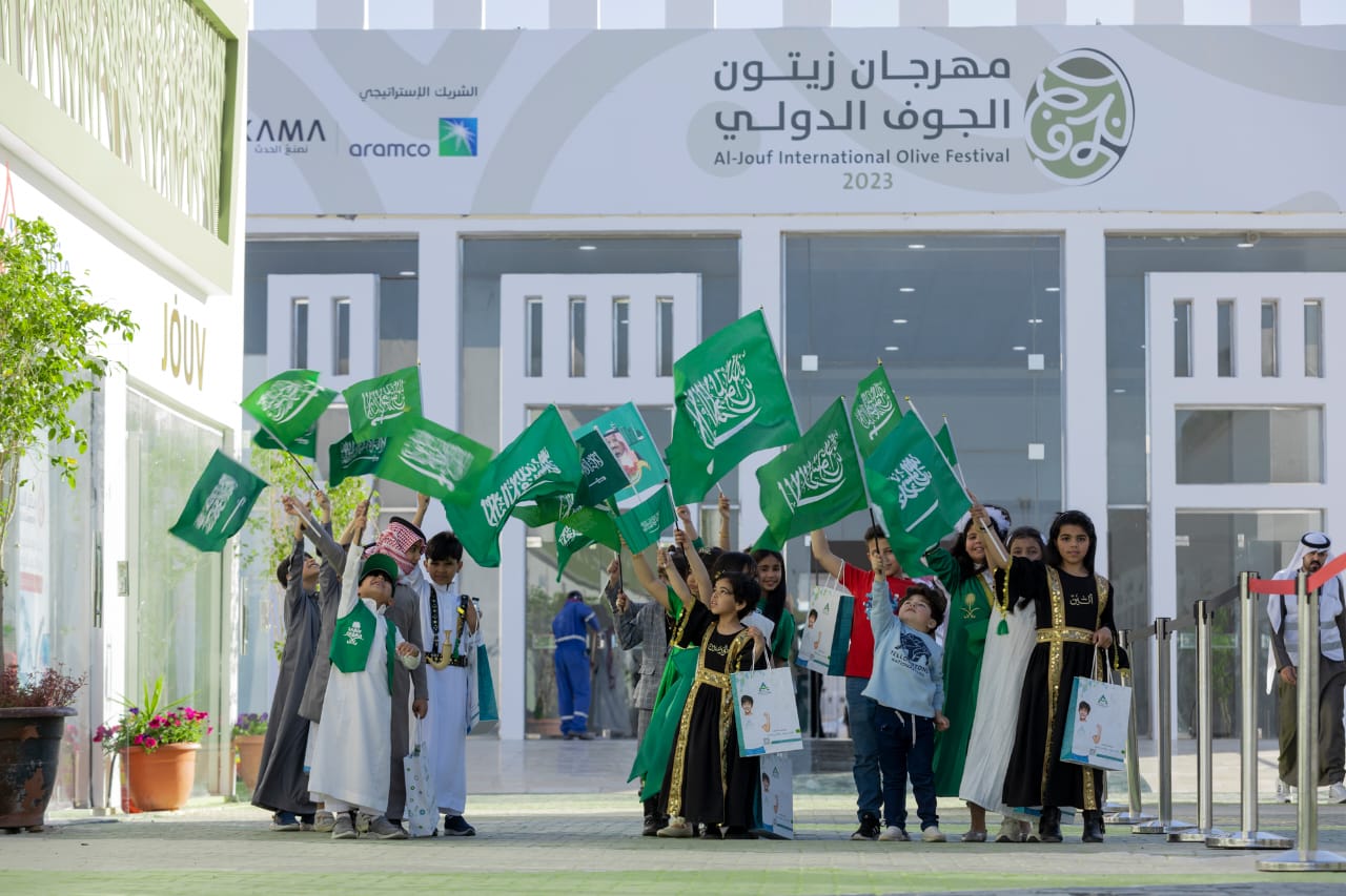 ٣٨٠٠ علم سعودي في احتفالات مهرجان زيتون الجوف الدولي بيوم العلم