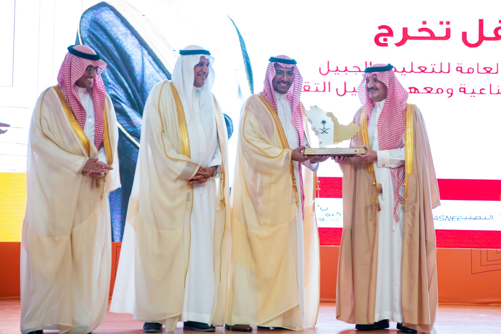 تحت رعاية صاحب السمو الملكي الأمير سعود بن نايف بن عبد العزيز أمير المنطقة الشرقية وبحضور معالي وزير الصناعة والثروة المعدنية رئيس مجلس إدارة الهيئة الملكية للجبيل وينبع الأستاذ بندر بن إبراهيم الخريف ومعالي رئيس الهيئة الملكية للجبيل وينبع المهندس خالد بن محمد السالم، أقامت الهيئة الملكية بالجبيل ممثلة في قطاع التعليم مساء اليوم الأحد حفل تخريج لطلاب كلية الجبيل الصناعية ومعهد الجبيل التقني والبالغ عددهم (2127) خريج في مركز الملك عبد الله الحضاري بمدينة الجبيل الصناعية.