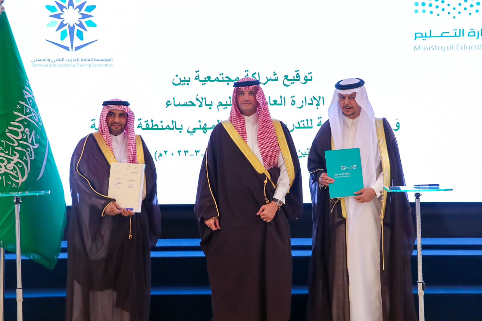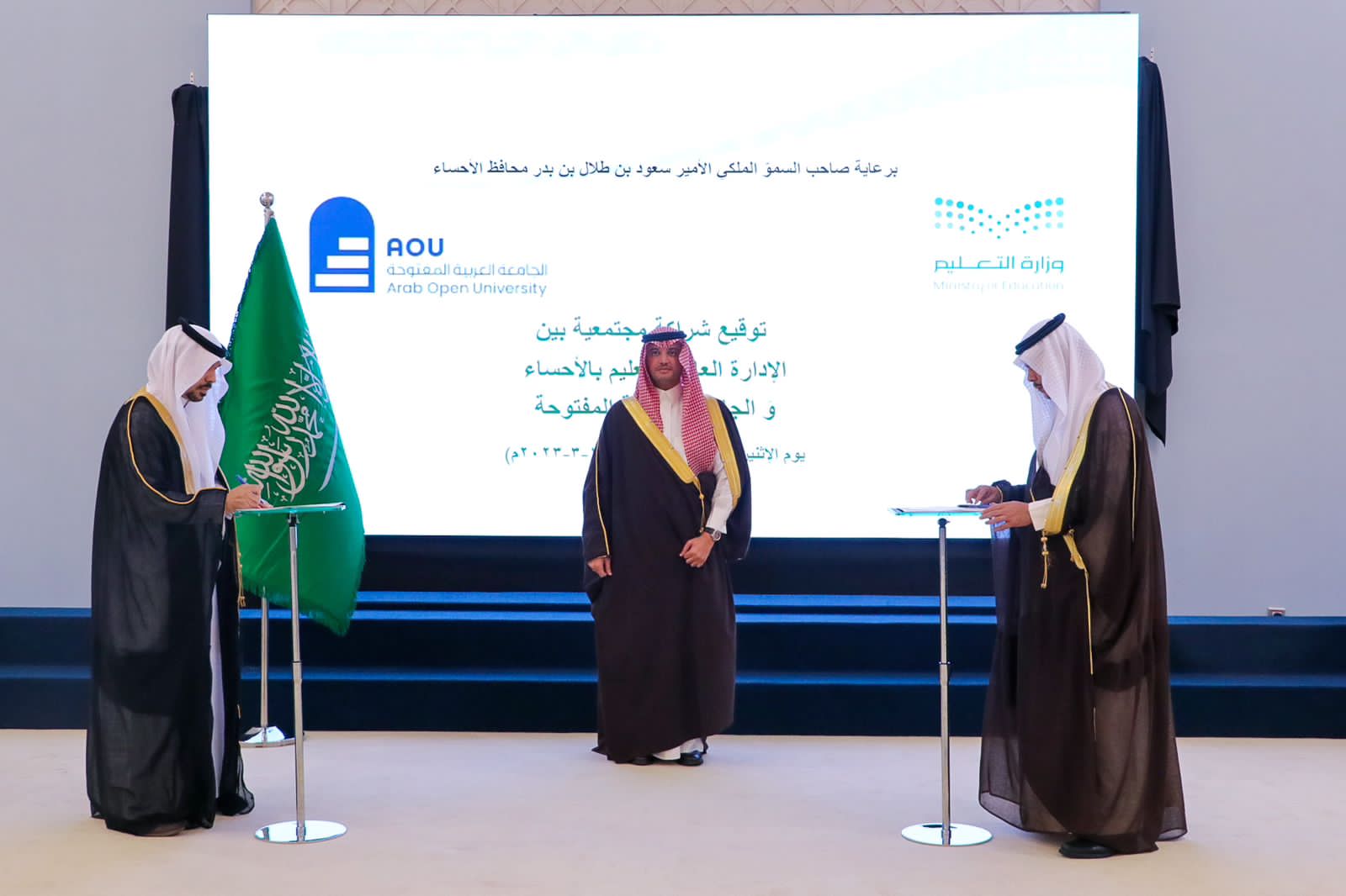 شهد صاحب السمو الملكي الأمير سعود بن طلال بن بدر محافظ الأحساء اليوم ” الاثنين ” بمقر المحافظة، توقيع خمس مذكرات الشراكة المجتمعية وتعاون بين تعليم الأحساء وكل من فرع وزارة الموارد البشرية والتنمية الاجتماعية بالمنطقة الشرقية ، و الجامعة العربية المفتوحة ، والإدارة العامة للتدريب التقني والمهني بالمنطقة الشرقية ، والمعهد الوطني للتدريب الصناعي ، وجمعية المشي والجري بالأحساء ، بحضور مدير عام تعليم الأحساء الأستاذ حمد بن محمد العيسى وعدداً من قيادات الجهات المعنية