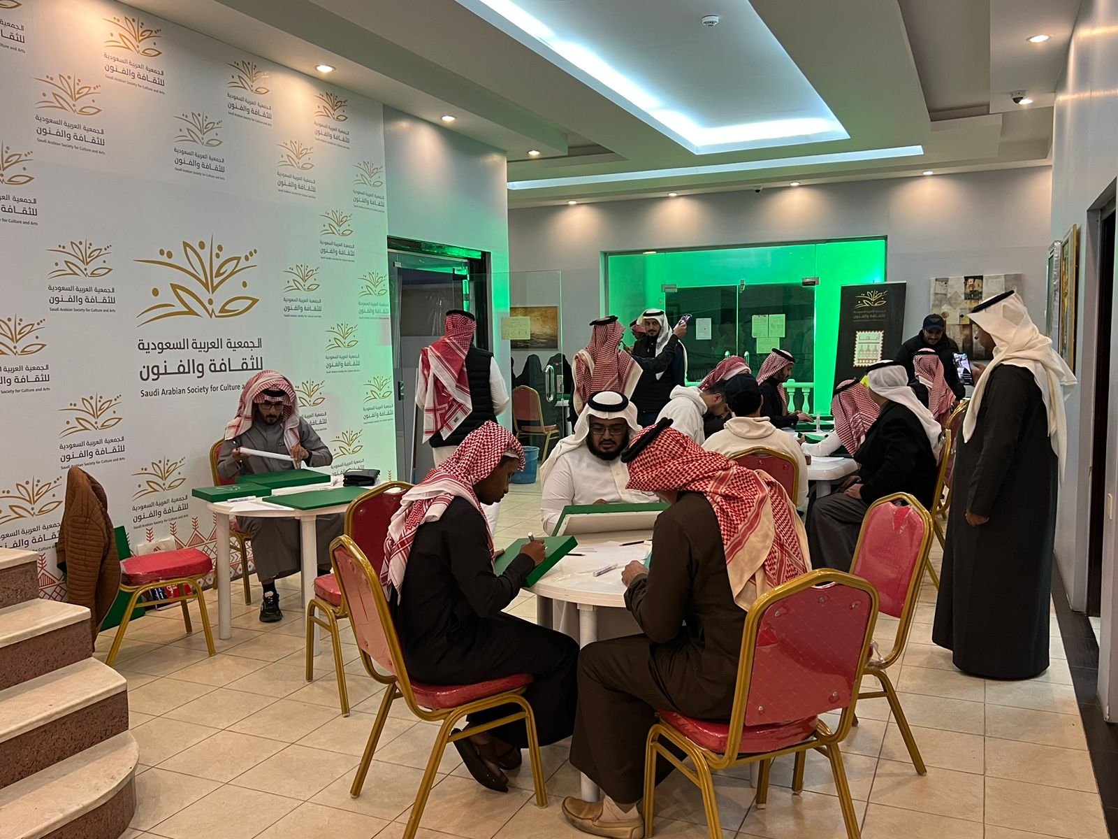 وبين مدير الجمعية أحمد السروي أن الاحتفال شهد مشاركة ٢٠ مصوراً ومصورة فوتوغرافيين قدموا فيها عدد من الصور التي تظهر وتبرز جماليات العلم السعودي بشكل احتفالي و كرنفالي يعزز من أهمية هذا اليوم في المملكة، مضيفًا أن الإحتفال شهد ورشة للخط العربي شارك فيها ٥٠ خطاطاً وخطاطة استلهموا خطوط الشهادتين على العلم منذ الدولة السعودية الأولى والكلمات الوطنية الخالدة لتعزيز الانتماء الوطني.