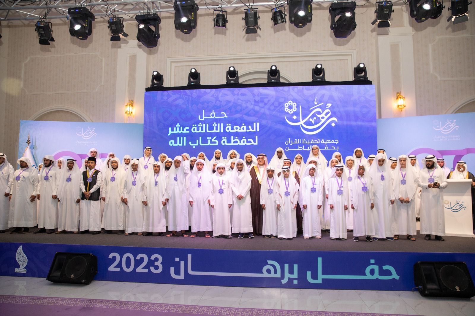 رعى صاحب السمو الامير منصور بن محمد بن سعد محافظ حفر الباطن، اليوم, حفل جمعية برهان لتحفيظ القرآن بالمحافظة، لتخريج الدفعة الثالثة عشرة لحفظة القرآن الكريم من طلاب وطالبات الجمعية البالغ عددهم “250” حافظاً وحافظة، بحضور عدد من مديري الإدارات الحكومية وأولياء الامور، وذلك بقصر السلطان للاحتفالات.