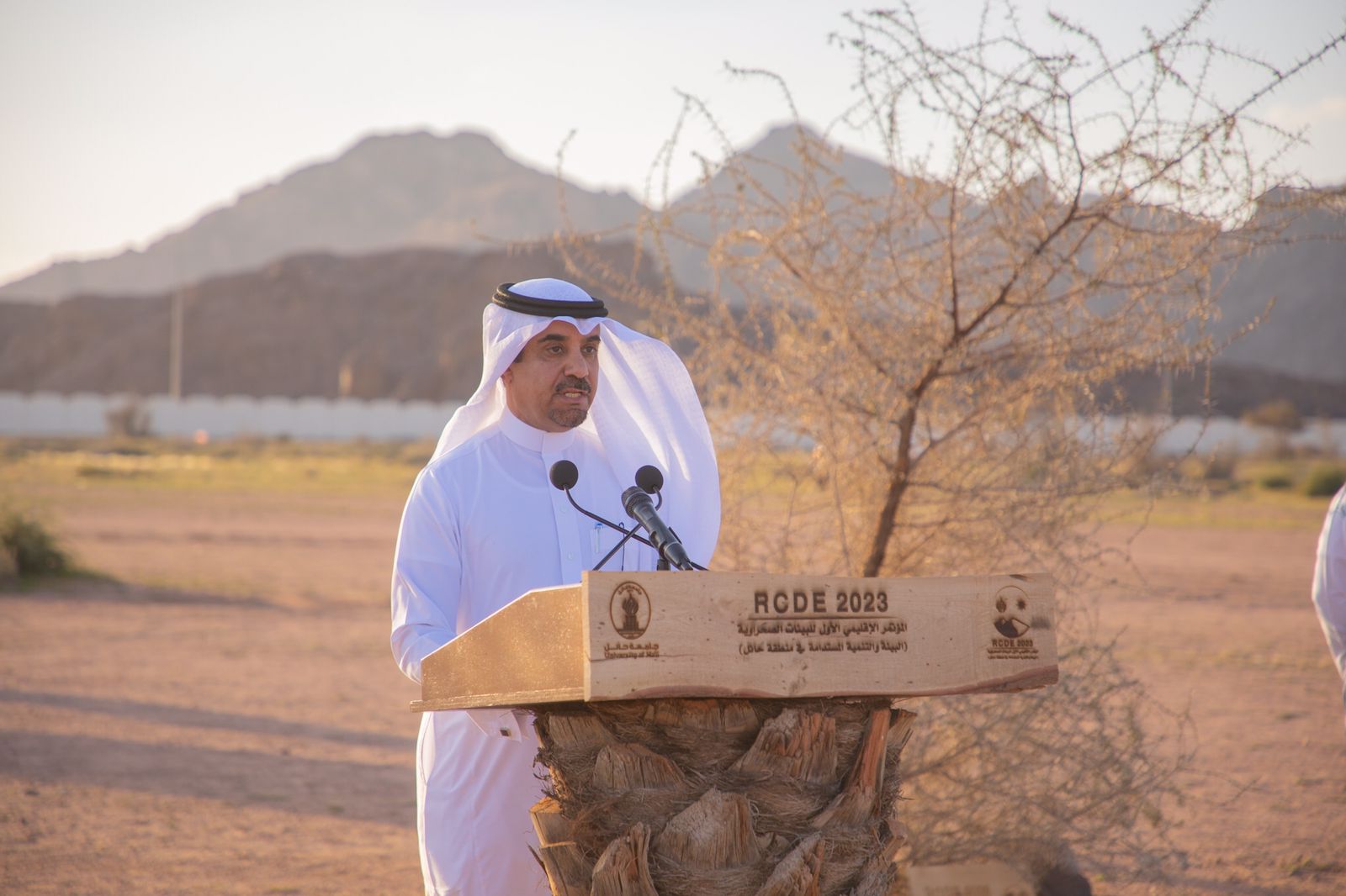 بعد ذلك ألقى عميد كلية العلوم، رئيس اللجنة العليا بالمؤتمر، الأستاذ الدكتور خلف بن مسلم العنزي، كلمة بيّن فيها أن “المؤتمر الإقليمي الأول للبيئات الصحراوية” جاء انطلاقًا من دور الجامعة في دعم مستهدفات رؤية المملكة ٢٠٣٠، كما أوضح أن المؤتمر يهدف إلى الخروج بتوصيات تخدم مستقبل البيئات الصحراويةِ في المملكة عامة، وفي منطقة حائل خاصة، فيما يخص حماية التنوع الأحيائي، والغطاء النباتي، واستدامة الموارد الطبيعية والمياه، وطرق الاستثمار الأمثل في البيئات الصحراوية، كذلك عرض الجهود التي تبذلها وزارة البيئة والمياهِ والزراعةِ، والمراكز الوطنية، والمحميات في الحفاظ على البيئة، وتوعية المجتمع بأهمية تنمية وحماية البيئة.