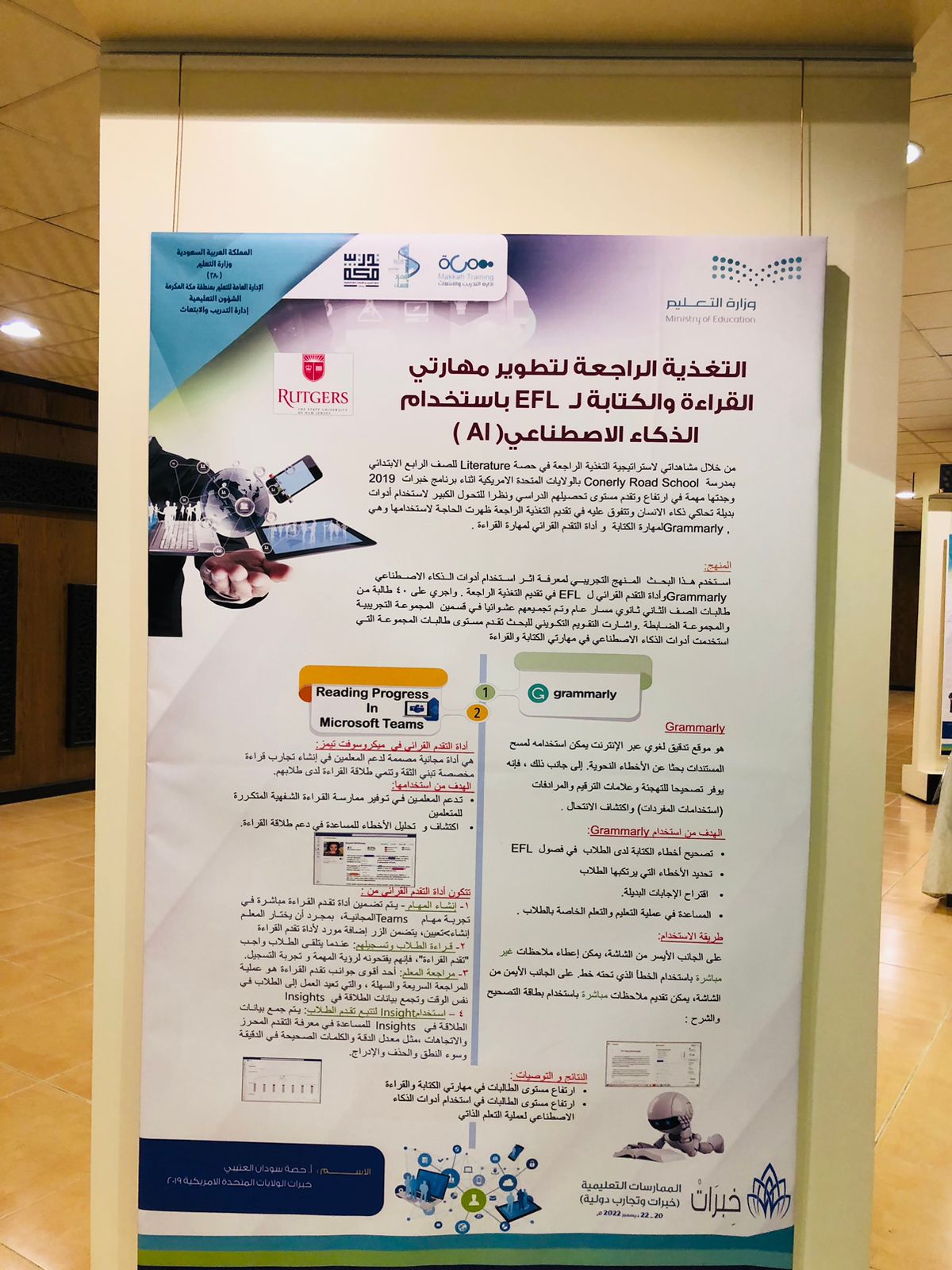 كما قدمت الأستاذة منال بخاري ورقة عمل بعنوان”استثمار الموهبة في التعليم” ، هذا وقدمت الأستاذة نورة الزهراني ورقة عمل بعنوان (الدمج الشامل لذوي الاحتياجات الخاصة) في فصول مراحل التعليم العام (التجربة البريطانية ) .
