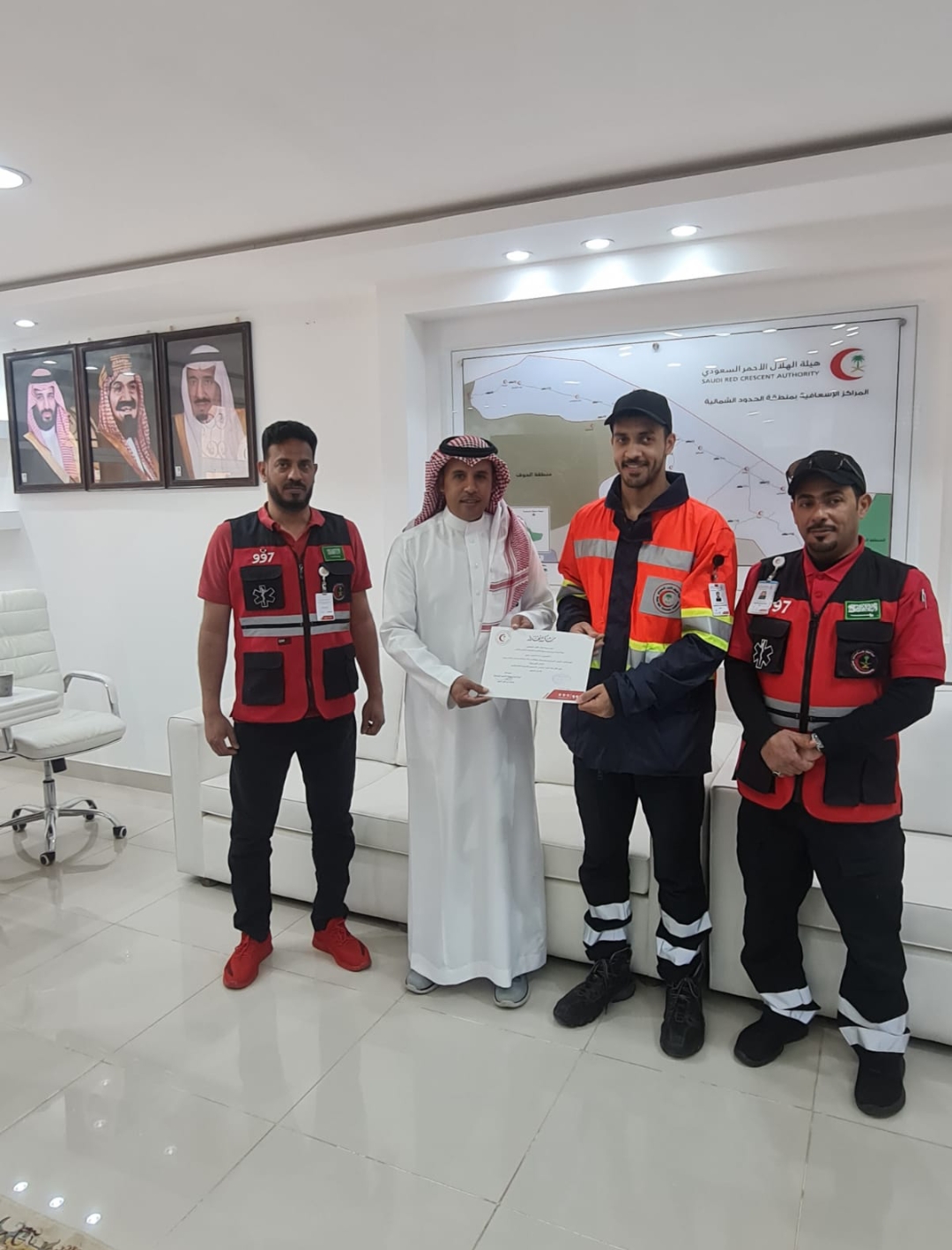كرم سعادة مدير عام فرع هيئة الهلال الأحمر السعودي بمنطقة الحدود الشمالية اليوم الأستاذ /مساعد غالي العنزي اليوم سفراء الحياة والحاصليين على شهادات تميز نظير مباشرتهم لحالات *توقف قلب وتنفس* وتمت بنجاح ولله الحمد وهم :