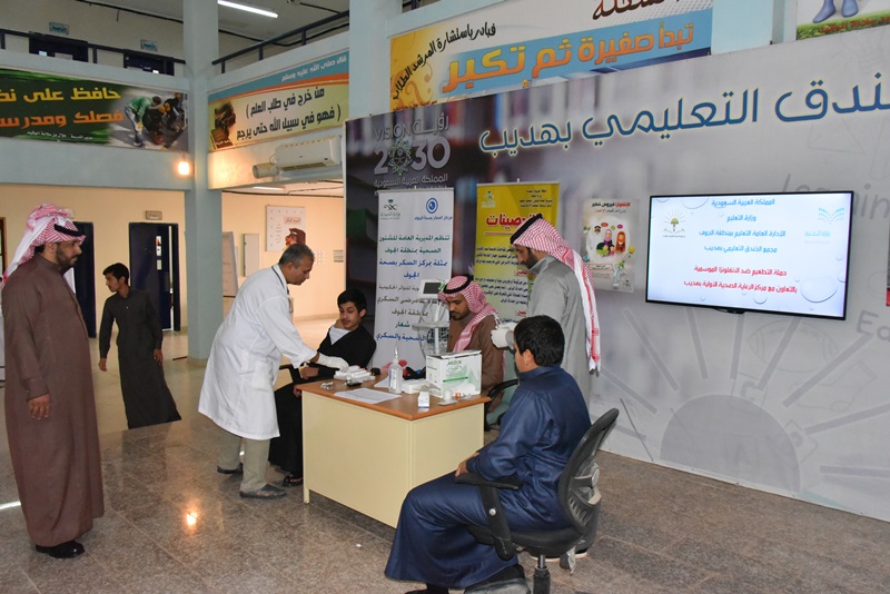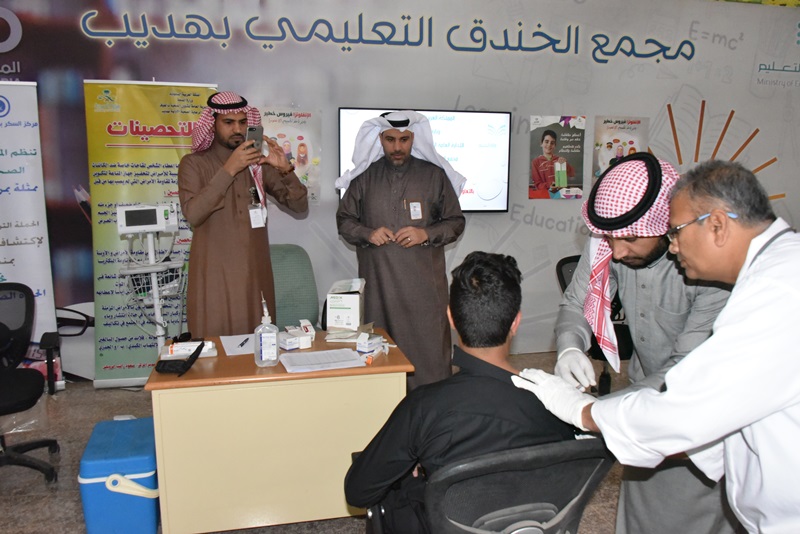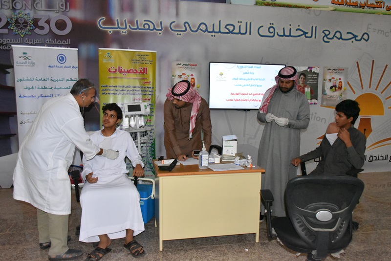كما تم التعريف بمرض سكري الدّم و أنواعه ، مع تقديم النصائح الطبية بهدف تعزيز الجانب الوقائي لدى الجميع ، خشية الإصابة بمرض السكري ، و قد ذكر بأن عددًا من الأسباب الرئيسية للإصابة بالمرض و مضاعفاته و مسبباته ، و سبل التعامل معه و معالجته . بعدها قامفري مركز صحي هديب بالقيام بفحص السكري لطاقم المجمع و الطلاب إضافة إلى تطعيمهم باللقاح ضد الأنفلونزا الموسمية .