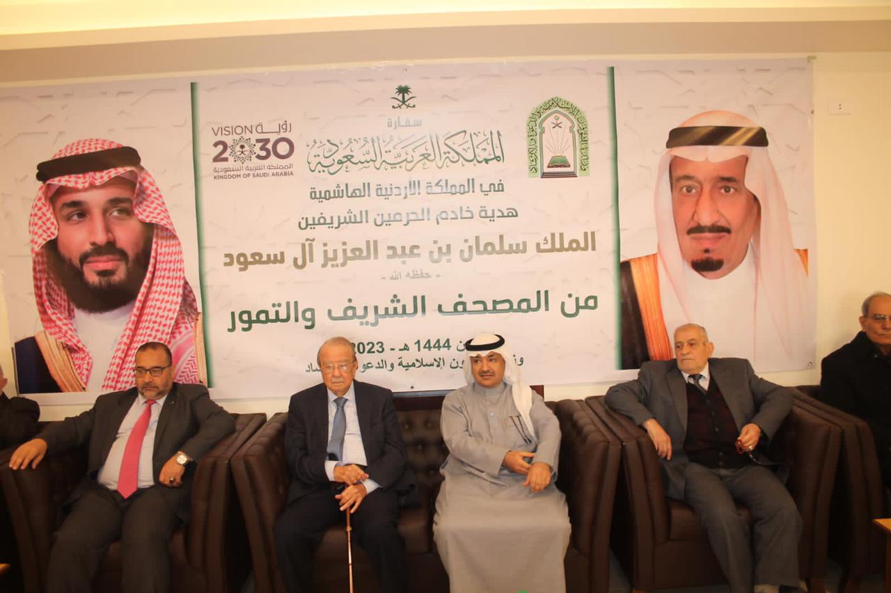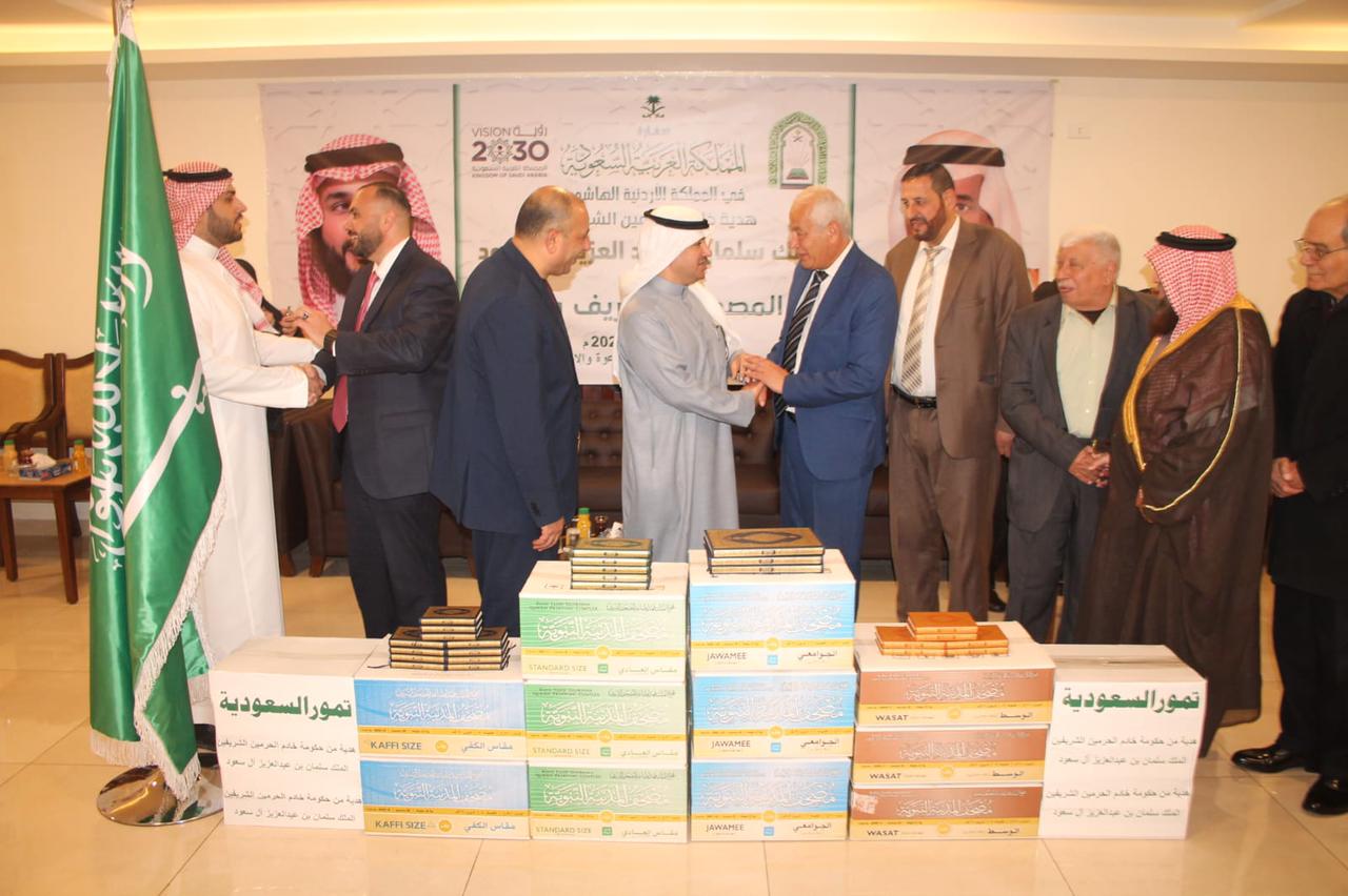 وزعت وزارة الشؤون الإسلامية والدعوة والإرشاد السعودية ممثلة بمكتب المستشار الديني في سفارة المملكة العربية السعودية لدى المملكة الأردنية الهاشمية اليوم، كمية من المصاحف الشريفة والتمور على عدة مناطق في المحافظات الأردنية والجمعيات الخيرية والمخيمات الفلسطينية والسورية.