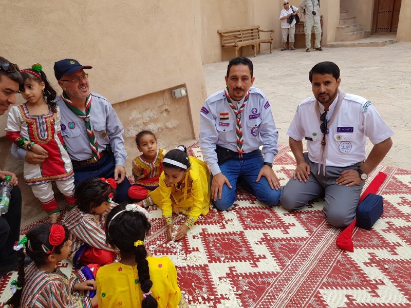 زار وفد كشافة المملكة المشارك في الدورة الكشفية العربية لتأهيل مشرفي وقادة ومسؤولي مراكز التدريب والمخيمات الكشفية ، التي تنظمها المنظمة الكشفية العربية بالتعاون مع المديرية العامة للكشافة والمرشدات في سلطنة عمان ، اليوم ولاية نزوى بمحافظة الداخلة ، حيث أطلعوا على قلعة نزوى وسوقها التاريخي ، تعرفوا خلالها على تاريخ بنائها وماتحتويه من معالم ومرافق أثرية ، كما زاروا سوق نزوى التراثي والذي يضم مجموعة من الصناعات التقليدية ، وشاهدوا بعض الالعاب الشعبية والفلكلورية والحرف التقليدية ، وصناعة الحلوى وابرز المنتجات والصناعات والحرف اليدوية ، وشاهدوا عددٍ من الافلاج والاوقاف التي تضمها الولاية ومن ابرزها فلج دارس .