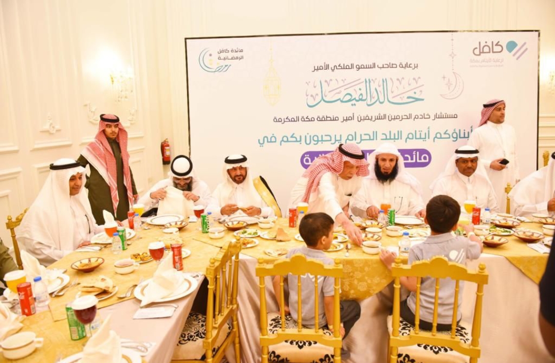 برعاية مستشار خادم الحرمين الشريفين أمير منطقة مكة المكرمة صاحب السمو الملكي الأمير خالد الفيصل نظمت مؤسسة كافل لرعاية الأيتام بمنطقة مكة المكرمة مائدة الإفطار الرمضانية بمشاركة الشريك الإعلامي فرع هيئة الصحفيين السعوديين بمنطقة مكة المكرمة وبحضور نائب وزير الحج والعمرة الدكتور عبدالفتاح مشاط ووكيل جامعة أم القرى الدكتور فريد الغامدي و نائب رئيس مجلس الامناء بمؤسسة كافل لرعاية الأيتام عبدالله بن داوود الفايز والأمين العام عبدالعزيز الفايز ورجل الأعمال أحمد العبيكان وعدد من المسؤولين ورجال الإعلام بالقاعة الكبري بحي النسيم بالعاصمة المقدسة
