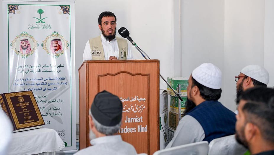 جاء ذلك خلال مراسم احتفالية جرت بمقر جمعية أهل الحديث المركزية لعموم الهند أكبر جمعية إسلامية بالهند وبحضور الملحق الديني بسفارة خادم الحرمين الشريفين الشيخ بدر بن ناصر البجيدي والمتحدث الرسمي لوزارة الشؤون الإسلامية الأستاذ عبدالله بن يتيم العنزي وأمير جمعية أهل الحديث المركزية لعموم الهند الشيخ أصغر علي إمام وعدد من رؤساء الجمعيات والشخصيات الإسلامية والدعاة.