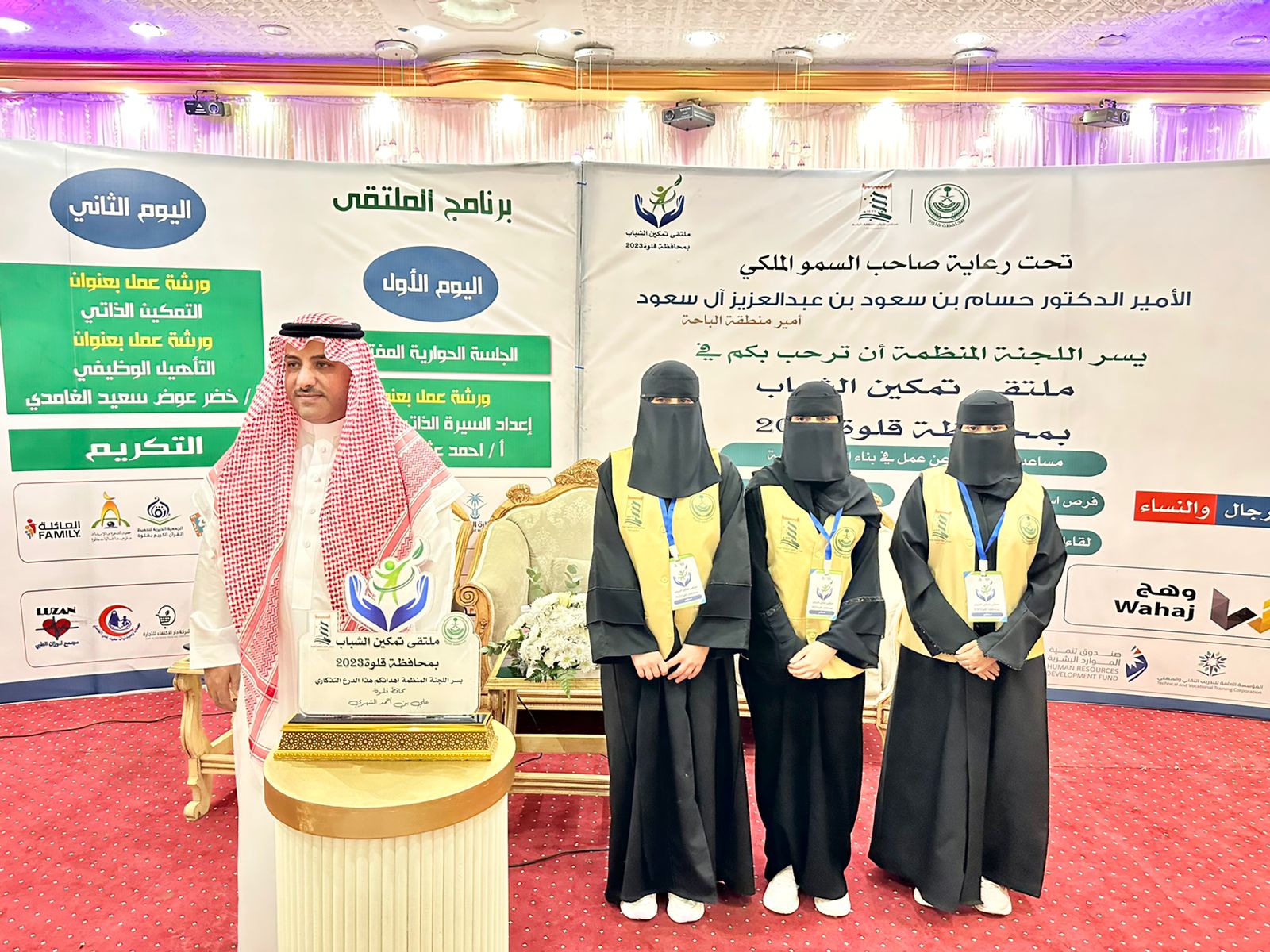 رعى محافظ قلوة علي بن احمد الشهري ختام أعمال ملتقى تمكين الشباب 2023 بمحافظة قلوة التابعة لأمارة منطقة الباحة