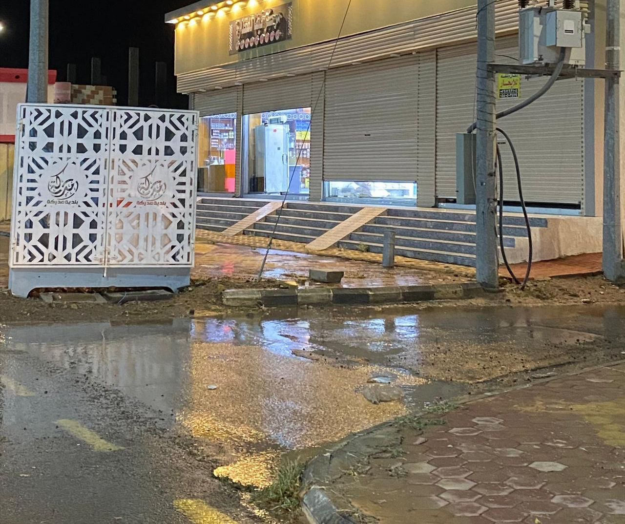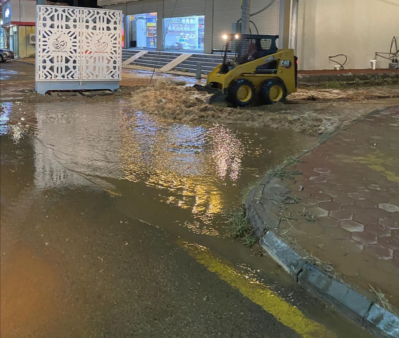 وتمّ شفط تجمعات المياه وكنس الأتربة من الطرقات وتنظيف فتحات تصريف مياه الأمطار، لضمان انسيابية تدفق مياه السيول دون عوائق .