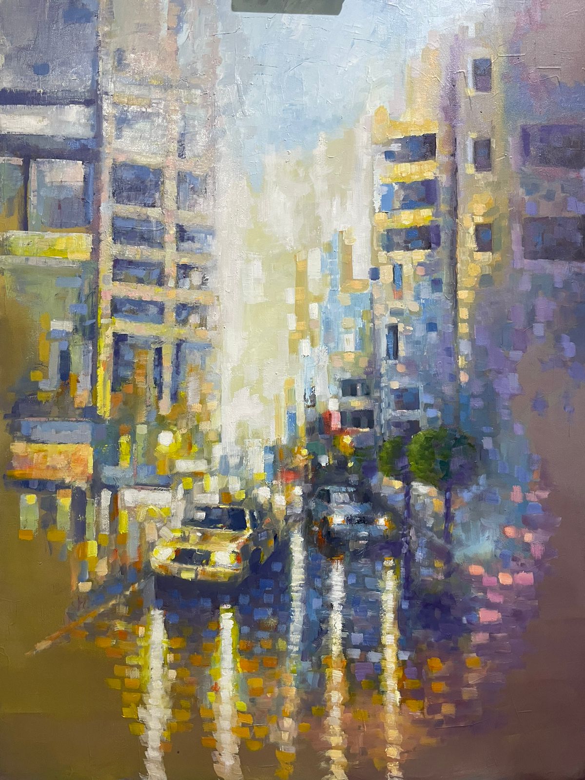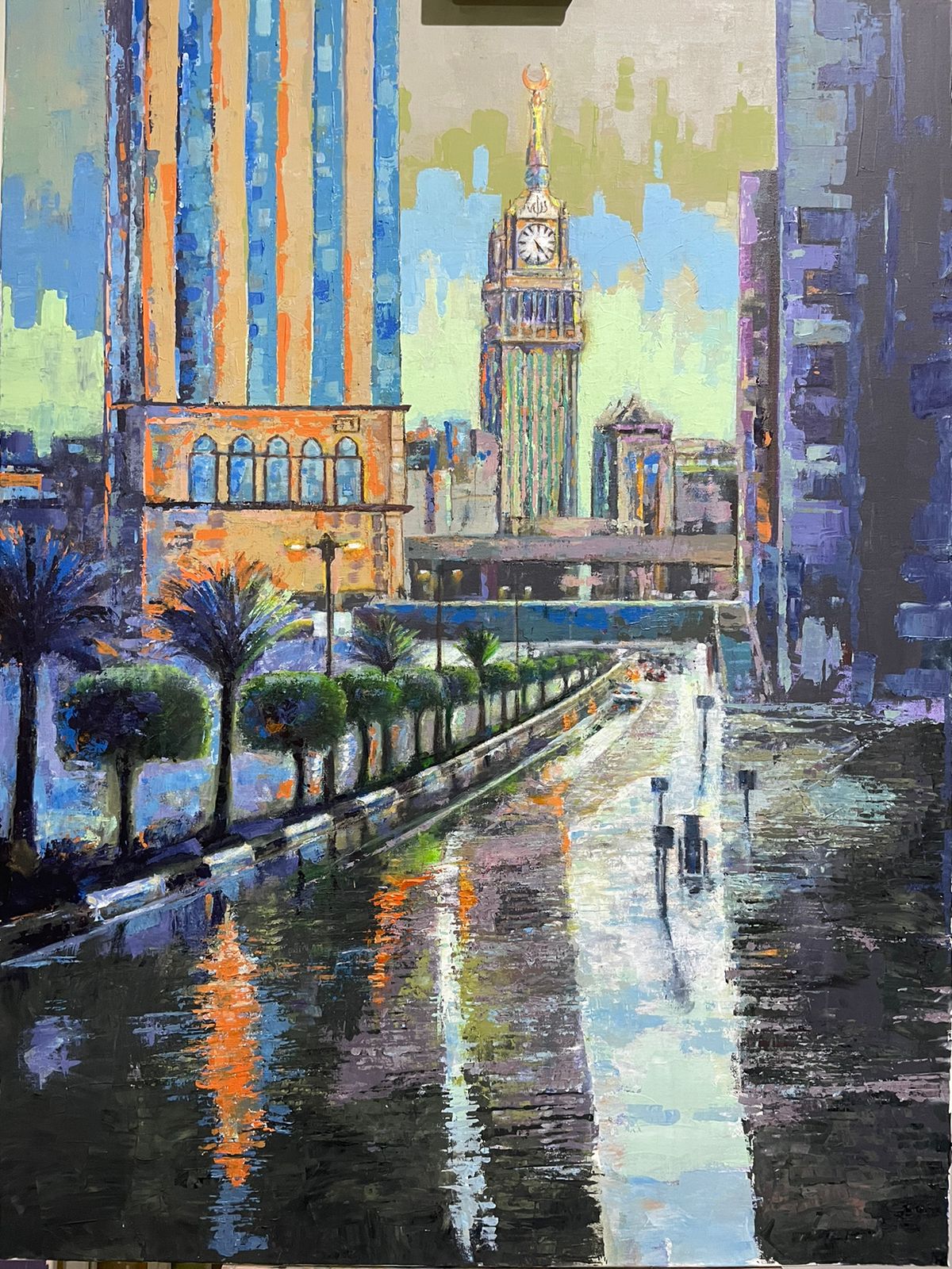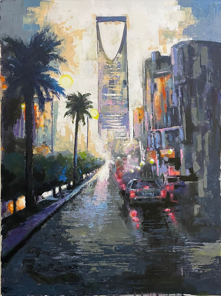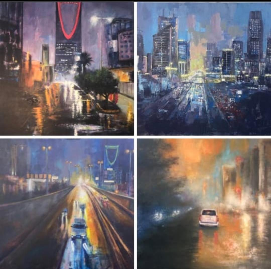 فن الضبابية اشتهر فيها أكثر فناني القرن السابق الرسم بوقت الأمطار وضبابية اللوحة طورت فيها بلوحاتي بعدم تحديد العناصر ودمجها مع بعض بطريقة لف الريشة وهذا أسلوب استخرجته قبل مايقارب  ٢٤ عاماً واشتهرت فيه في وقته بلوحة الناقة والآن أحببت أن أعكسه على مدننا بطريقة حديثة حيث قمت برسم أغلب مدن المملكة،