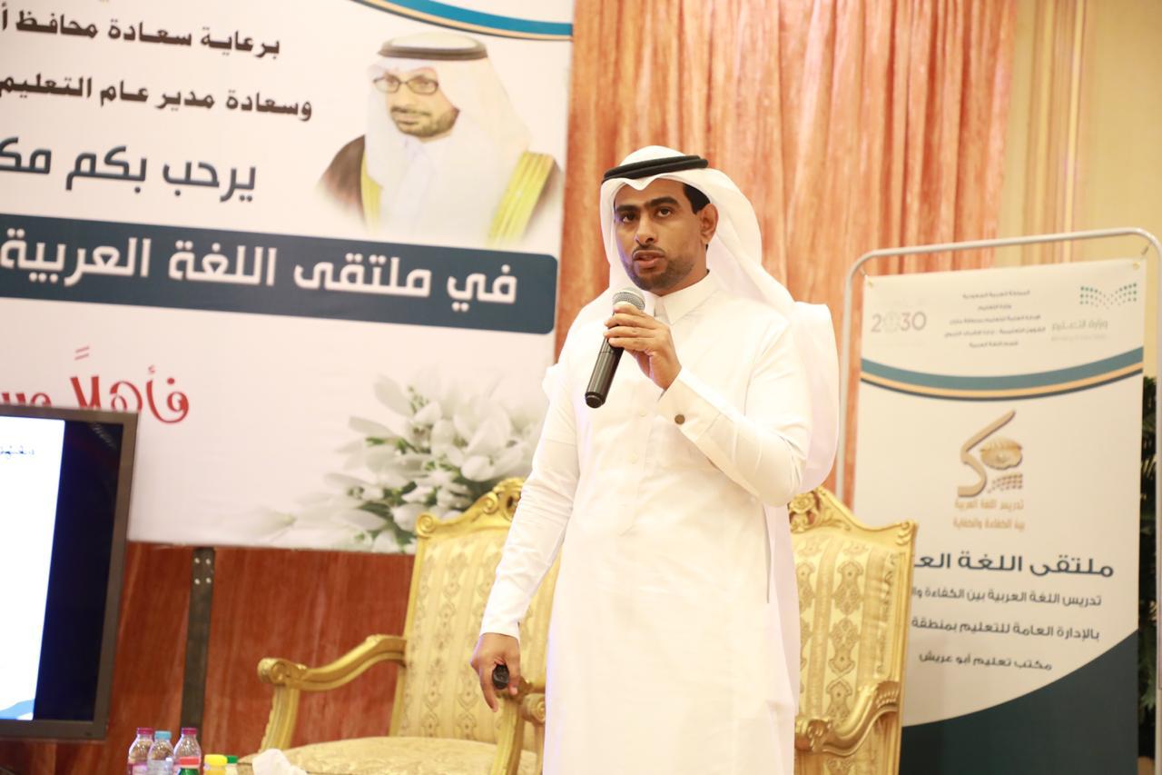 وأوضح “الدويري” أن الملتقى الذي دشنه محافظ أبوعريش ومدير تعليم جازان استعرض خلال يوميه عدداً من أوراق العمل قدمها مجموعة من المتخصصين في اللغة العربية وناقشت أهم القضايا التي تواجه المعلمين والمعلمات بالميدان وأبرز التقنيات الحديثة في تدريس اللغة العربية ، كما قدم الملتقى عدداً من التجارب المتميزة والرائدة في تدريس اللغة العربية ، مضيفاً أن الملتقى قدم لمسة وفاء ومحبة لرواد اللغة للعربية بمنطقة جازان حيث كرم 5 من الرواد الذين قدموا الكثير للغتنا تأليفاً ونشراً ، مقدمًا الشكر لمكتب تعليم أبوعريش على استضافته للملتقى ولجميع اللجان المنظمة.