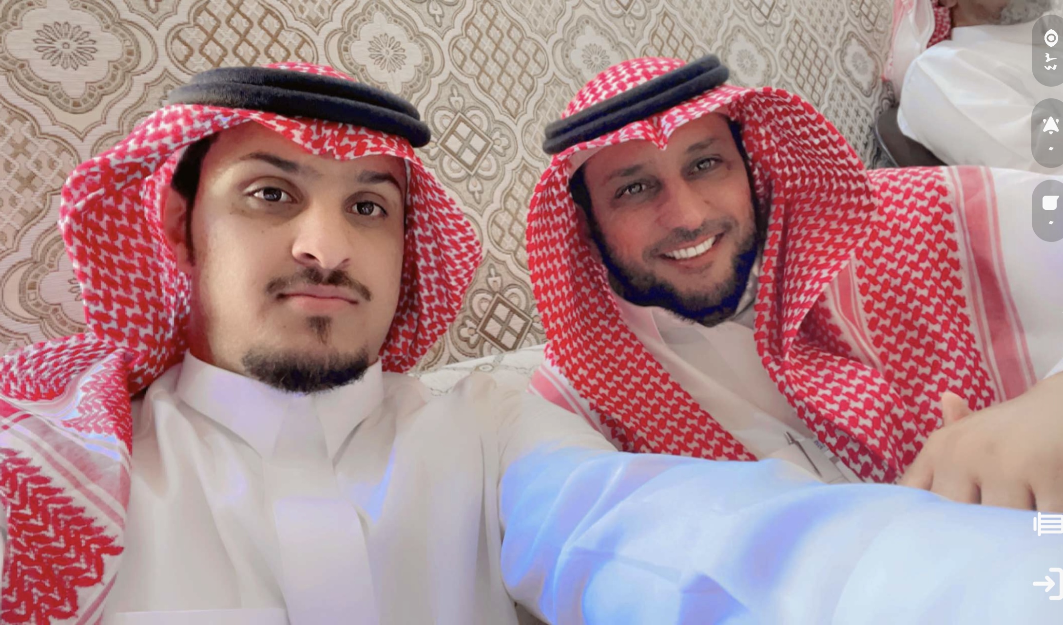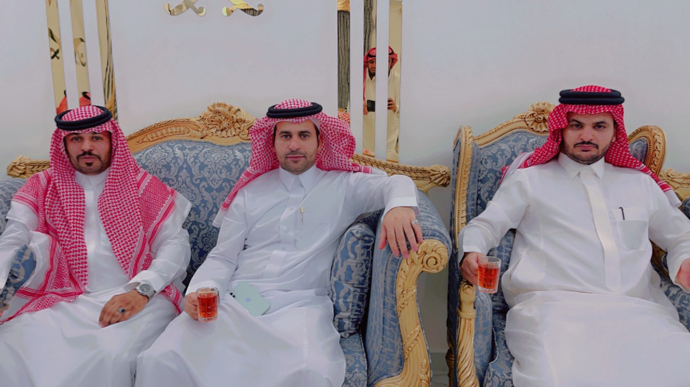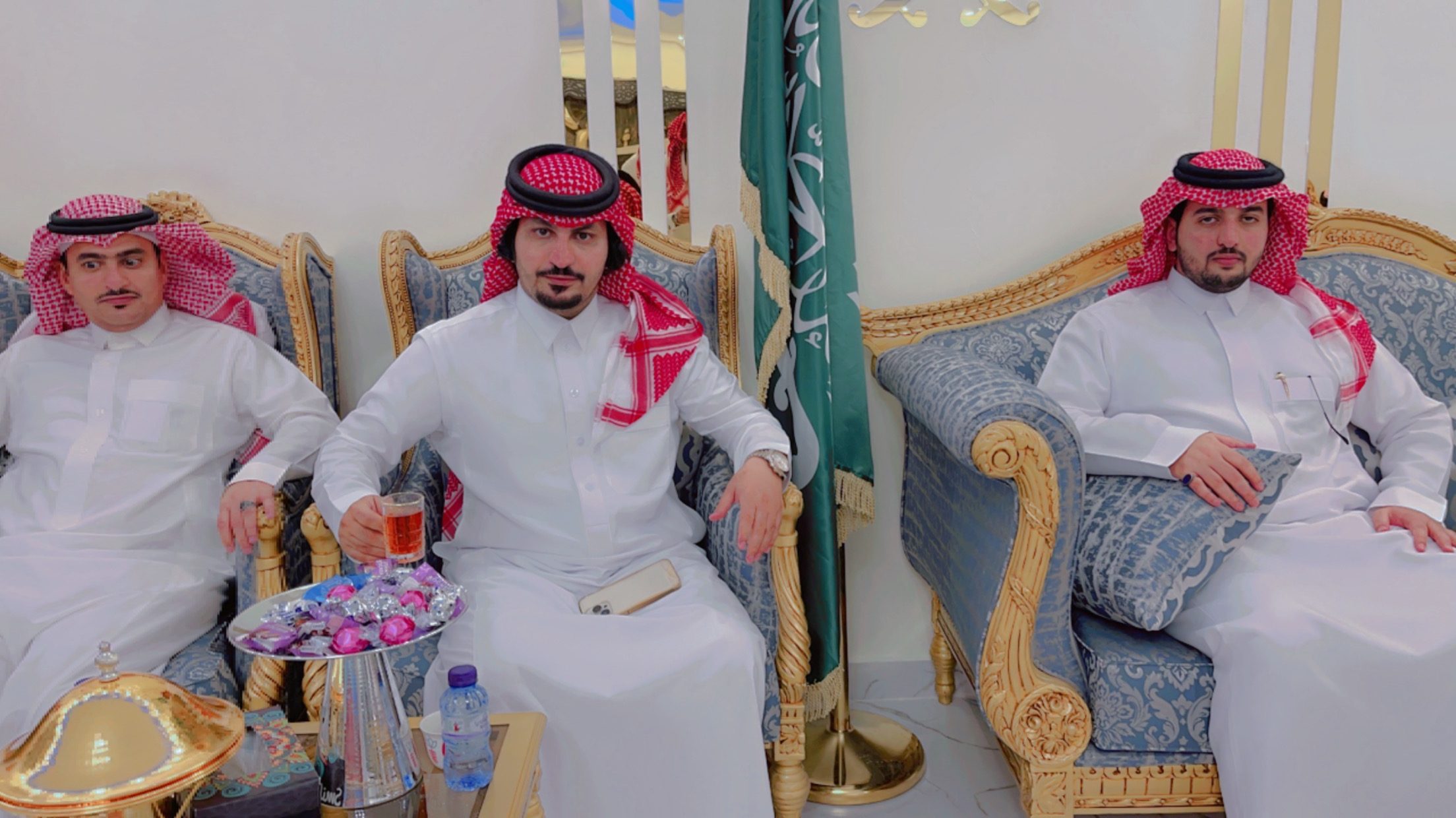 وبعدها أكمل الاهالي برنامج المعايدة بزيارة ديوان الأعلامي عبدالرحمن بن مرشد مدير صحيفة الشمال لمعايدته وتشرف بن مرشد في ديوان منزله العامر باكرام المهنئين بعيد الفطر المبارك وعبر عن سروره وتقديره لكل من حضر فردًا فردًا متمنيًا للجميع دوام الافراح والابتهاج بعيد كتبه الله لنا جائزة وفوزًا بعد شهر الصيام .