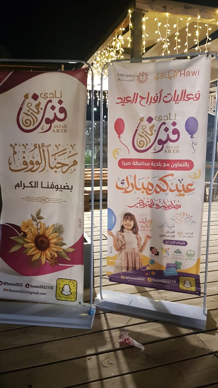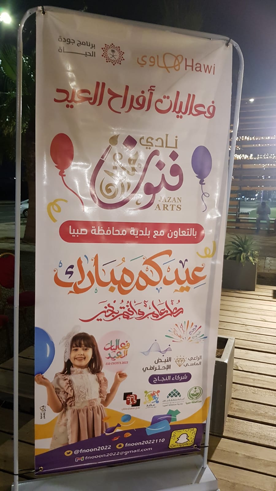 شــارك نادي فنون جازان في فعاليات أفراح العيد بمناسبة عيد الفطر المبارك لـــعام 1444هــ ، بالتعاون مع بلدية صبيا والمعهد الصناعي بالمحافظة؛ وذلك بحضور مدير العلاقات العامة بالبلدية الأستاذ صلاح ماطر وعدد من الفنانين والفنانات والإعلاميين و الأدباء والمهتمين، وكان ذلك في حديقة الملك عبدالله.