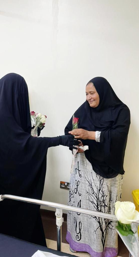 وقدمت سعادتها الورود والشوكولا للمرضى سائلة الله لهم الشفاء العاجل والعودة إلى أهليهم ممن، وكذلك عايدت الكادر الطبي وتمنت لهم مزيدًا من التوفيق، معرِبةً عن شكرها لوزارة الصحة ممثلةً في إدارة المستشفى والفريق الطبي على ما يوفرونه من خدمات عالية المستوى والكفاءة، وذلك استمراراً لجهود وزارة الصحة المتكاملة للحفاظ على صحة وسلامة قاصدي بيت الله الحرام.