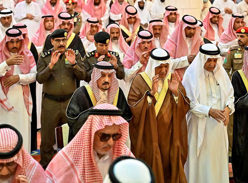 وأدّى الصلاة مع سموه سماحة مفتي عام المملكة رئيس هيئة كبار العلماء وإدارة البحوث العلمية والإفتاء الشيخ عبدالعزيز بن عبدالله آل الشيخ، وصاحب السمو الملكي الأمير تركي الفيصل بن عبدالعزيز، وصاحب السمو الأمير تركي بن عبدالله بن عبدالرحمن، وصاحب السمو الملكي الأمير سعود بن سعد بن عبدالعزيز، وصاحب السمو الملكي الأمير خالد بن سلطان بن عبدالعزيز، وصاحب السمو الملكي الأمير خالد بن سعد بن عبدالعزيز، وصاحب السمو الأمير متعب بن ثنيان بن محمد، وصاحب السمو الملكي الأمير خالد بن بندر بن عبدالعزيز مستشار خادم الحرمين الشريفين، وصاحب السمو الملكي الأمير منصور بن متعب بن عبدالعزيز وزير الدولة عضو مجلس الوزراء، وصاحب السمو الملكي الأمير محمد بن مشاري بن عبدالعزيز، وصاحب السمو الأمير نواف بن محمد بن عبدالله، وصاحب السمو الملكي الأمير فيصل بن محمد بن سعود بن عبدالعزيز، وصاحب السمو الملكي الأمير فهد بن تركي بن عبدالعزيز، وصاحب السمو الملكي الأمير عبدالعزيز بن سطام بن عبدالعزيز مستشار خادم الحرمين الشريفين، وصاحب السمو الأمير بندر بن سلمان بن محمد، وصاحب السمو الملكي الأمير الفريق الركن تركي بن بندر بن عبدالعزيز قائد القوات الجوية الملكية السعودية.
