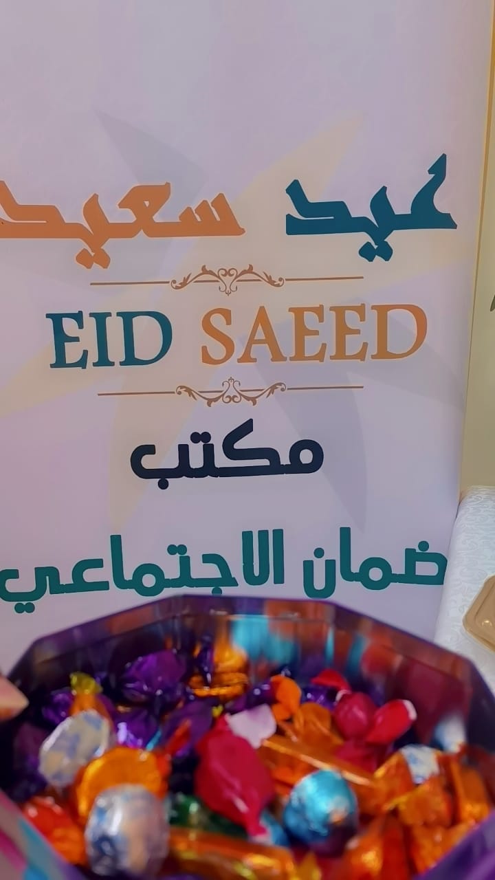نظم مكتب الضمان الاجتماعي بالأحساء صباح اليوم الأربعاء ٦- ١٠- ١٤٤٤هـ الموافق ٢٠٢٣/٤/٢٦ م حفل معايدة لمنسوبيه بمناسبة عيد الفطر المبارك بحضور سعادة مدير المكتب الاستاذة نورة بنت عبدالرحمن آل الشيخ مبارك .والأستاذ خالد العنزي .