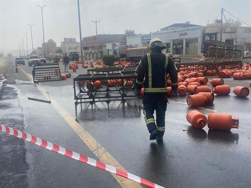 وأوضحت أن التسرب نتج عن حـادث سير أدى لسقوط أسطوانات الغاز على الأرض.
