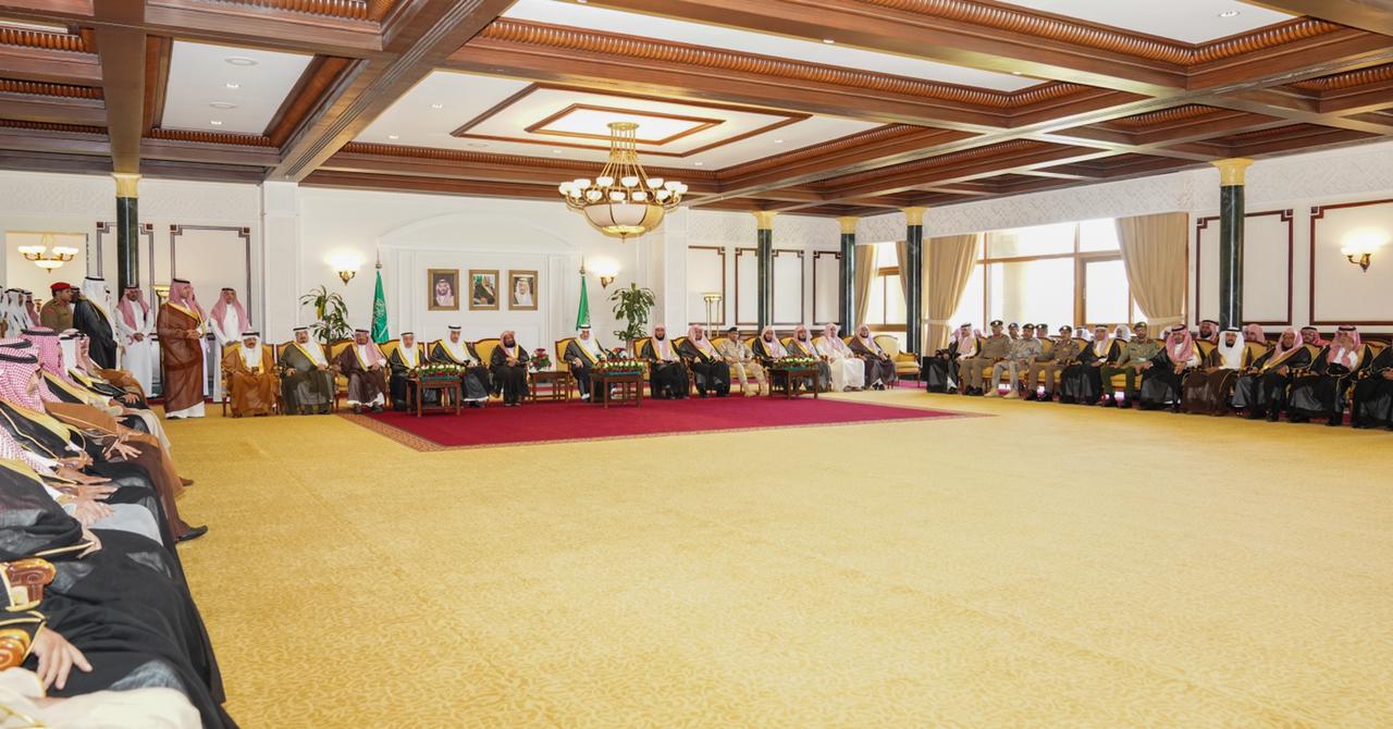 وأشار سمو أمير المنطقة إلى أننا ولله الحمد في نعمة كبرى فبلادكم ولله الحمد وحدها الملك عبد العزيز وجمع شملها ومعه الرجال المخلصين من آبائكم وأجدادكم من كافة أنحاء هذه البلاد، الذين استطاعوا ان يوحدوا هذه البلاد ويثبتوها على الكتاب والسنة، فعندما بدأ بدأ بكلمة لا اله الا الله محمد رسول الله.