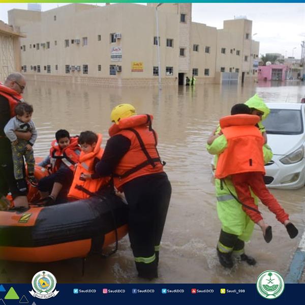 وأظهرت صور نشرتها صفحة الدفاع المدني السعودي بـ “تويتر”، الجهود التي قام بها رجال مدني القصيم، حيث تم إنقاذ 43 شخصاً من 12 عائلة وإخلاء 15 منزلاً في عنيزة.