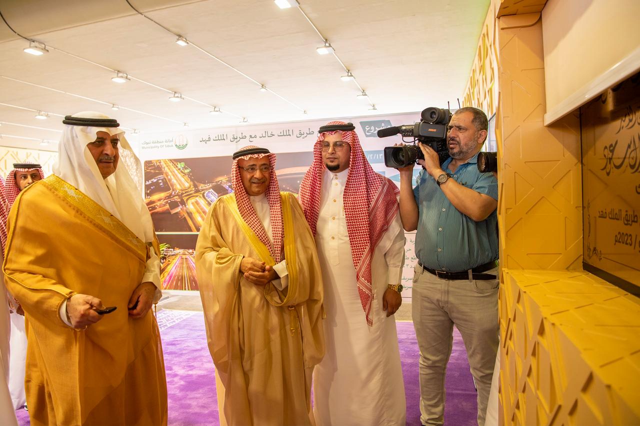 وكان في استقبال سموه لدى وصوله لمقر نفق تقاطع طريق الملك خالد مع طريق الملك فهد, أحد المشروعات التي نفذتها أمانة المنطقة والذي تم الانتهاء منه، أمين منطقة تبوك المهندس حسام بن موفق اليوسف وعدد من قيادات الأمانة.