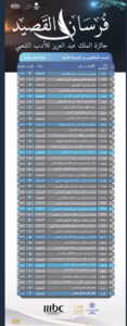وجاءت قائمة اسماء المتأهلين الـ200 للمقابلة النهائية لجائزة الملك عبد العزيز للأدب الشعبي، في فروعها المختلفة (فئة النبطي،الشيلات، فئة المحاورة،فئة فئة الشعبي العربي”،على النحو التالي: