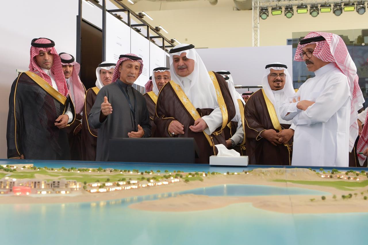 لافتاً سموه إلى أن ماشاهده اليوم هو شيء مذهل. وأنا شخصياً مذهول من العبقرية التي أوجدت هذه المشاريع، وهي مشاريع خلاقة، واجزم بأنها غير موجوده في اي مكان في العالم، والاهم من هذا ما نشاهد صور ومجسمات لكن العمل مستمر الآن ويسير بسرعه هائله وستبدأ الناس تشوف وتلمس وتجرب وتعيش وتزورخلال اشهر بسيطه هذه المشاريع .مقدما سمو أمير المنطقة التهنئة للمملكه العربيه السعوديه لخادم الحرمين الشريفين وتهنئه خاصه لراعي هذا المشروع، فكره وطموحه لسمو سيدي ولي العهد والذي ما يحلم فيه بدأ يتحقق.