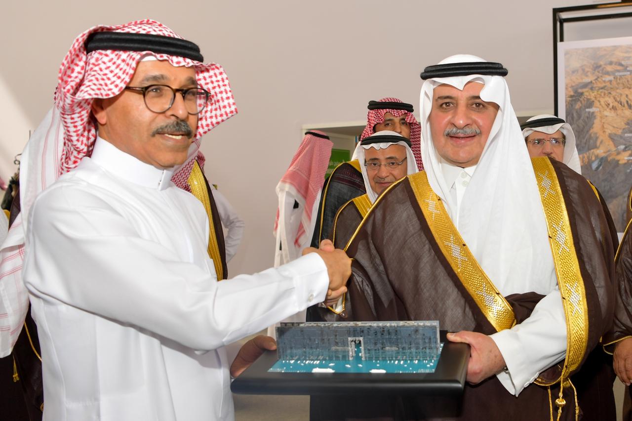 بعدها تسلم أمير منطقة تبوك هدية تذكارية من المهندس نظمي النصر بهذه المناسبة.