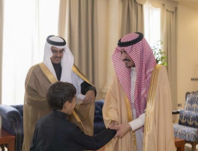 وأكد الأمير فخره بالطفل وبوطنيته وحبه للوطن وقيادته التي زرعتها فيه أسرته، وضرب بها الطفل مثلا يحتذى وهو في هذا العمر، متمنيا له التوفيق في حياته الدراسية، ومقدما شكره لكافة الطلاب والطالبات في محافظات المنطقة الذين شاركوا في الاستقبال والاحتفالات.