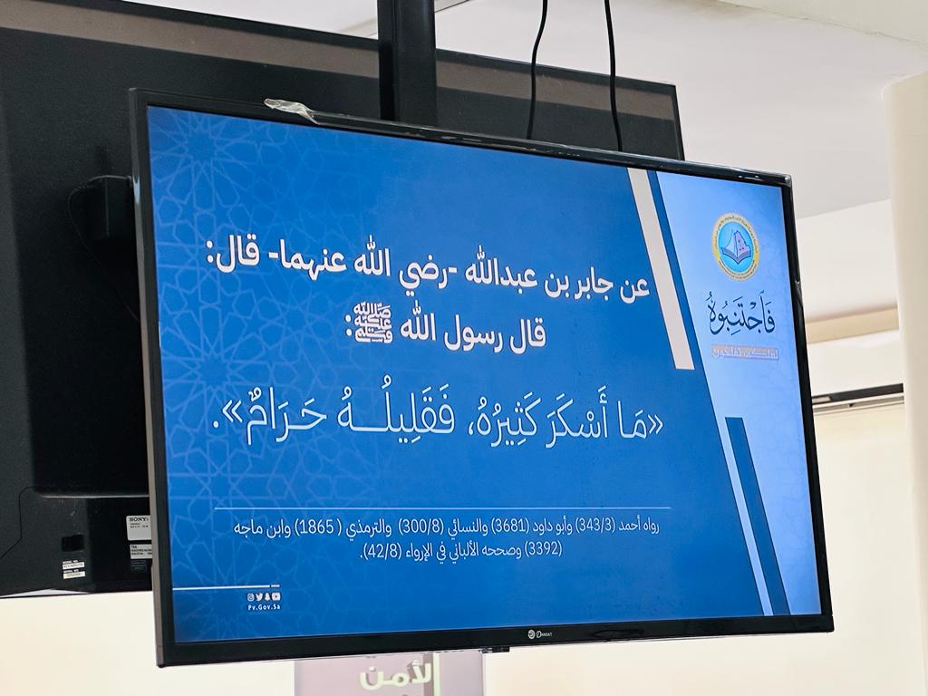 فعَّلت هيئة الأمر بالمعروف والنهي عن المنكر بمحافظة محايل ومركز هيئة الصبيخة برنامج “فاجتنبوه لعلكم تفلحون” وذلك بنشر المحتوى التوعوي والوقائي للبرنامج في بيان خطر المخدرات على الفرد والمجتمع عبر الشاشات الإلكترونية في المراكز الصحية والمجمعات التعليمية .