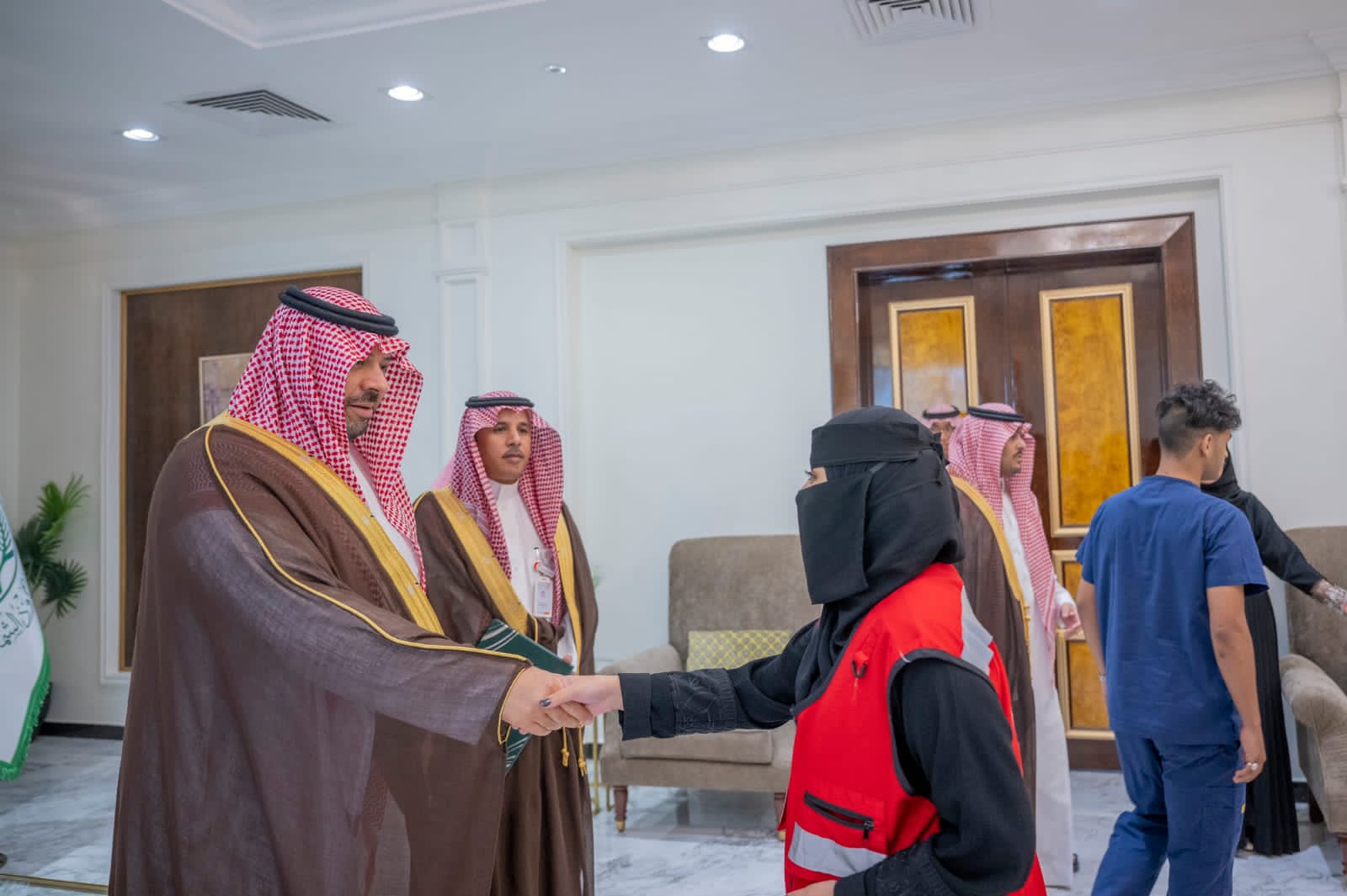 جاء ذلك خلال استقبال سموه في مكتبه بالإمارة مدير فرع هيئة الهلال الأحمر السعودي بالمنطقة مساعد العنزي، يرافقه قيادات الفرع والمتطوعون والمتطوعات المشاركون في منفذ جديدة عرعر.