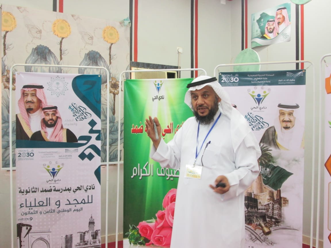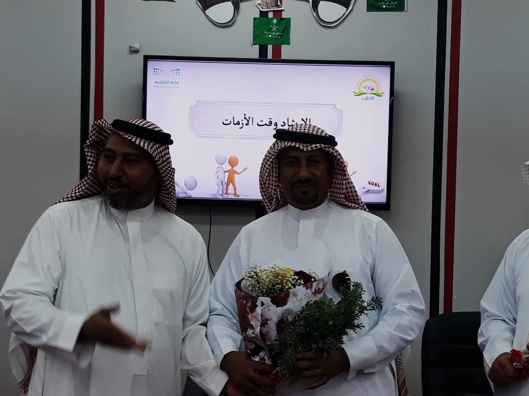 رعى المساعد للشؤون التعليمية بمكتب تعليم ضمد الأستاذ هادي بن محمد معلم اليوم الاثنين ١٤٤٠/٣/١٨هـ ختام دورة الإرشاد وقت الأزمات ” اشراق ” المقامة في نادي الحي بثانوية ضمد والتي نفذها مشرف وحدة الخدمات الإرشادية بتعليم ضمد الأستاذ/ علي محمد الخواجي بحضور مدير التدريب بالمكتب الاستاذ جابر حسين معافا