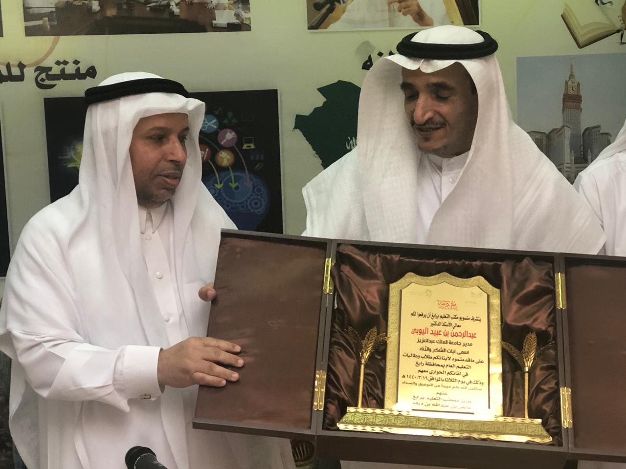 وخلال لقاء معاليه أعلن عن استعداد الجامعة برعاية جائزة رابغ للتميز العلمي التي يتبناها مكتب التعليم برابغ