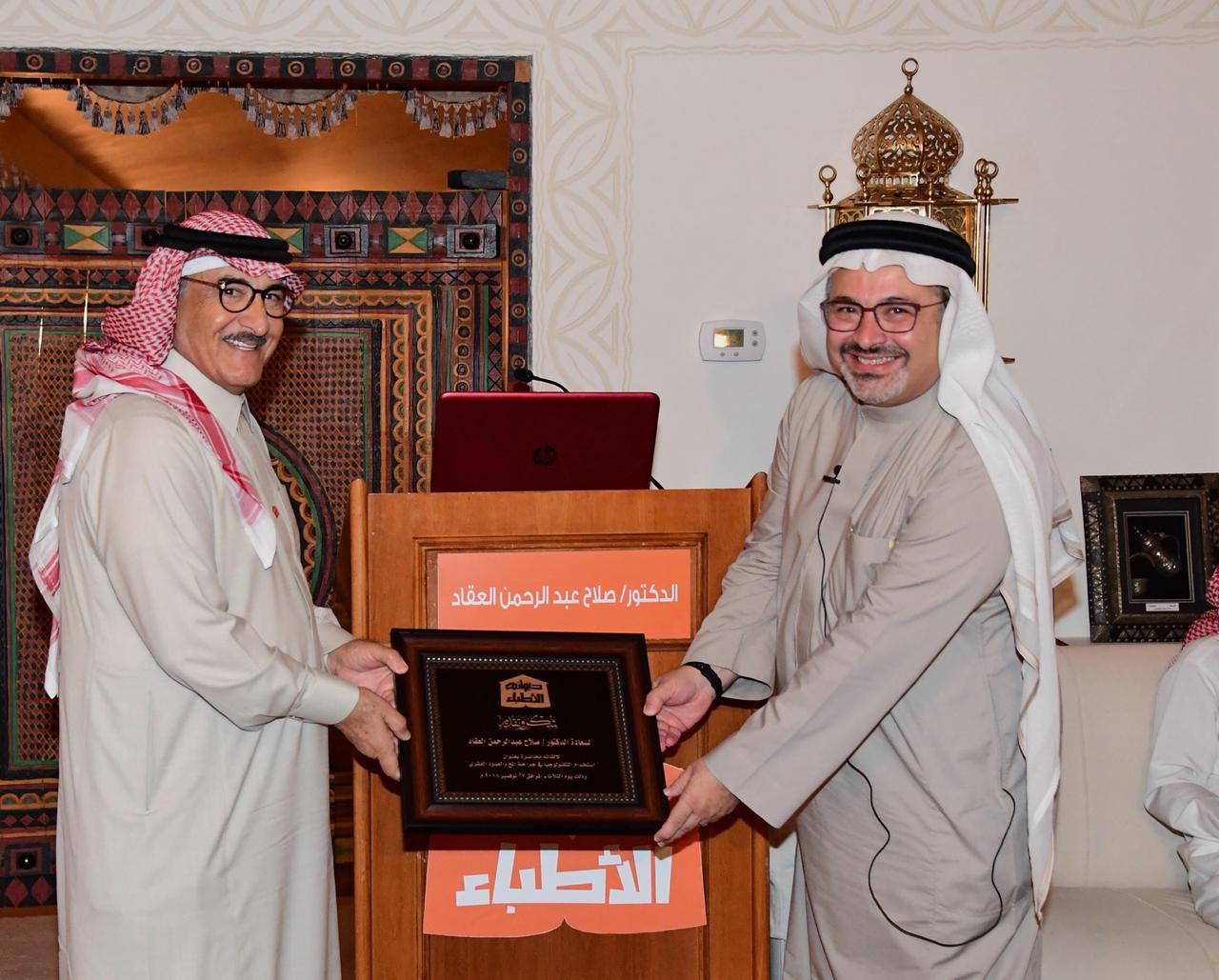 وفي نهاية الديوانية تم تكريم د. صلاح العقاد، من مؤسس الديوانية عبدالعزيز التركي.