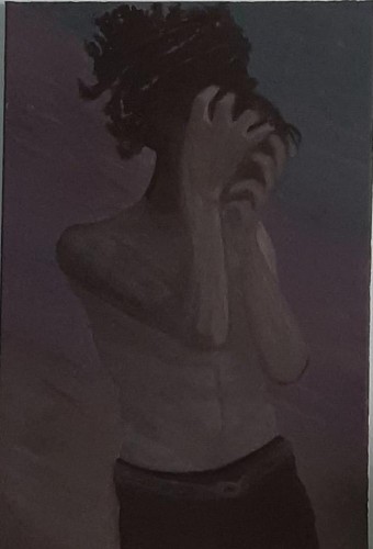 ولوحة’جرعةزائدة’لوحة تشكيلية فنية على كانفاس ومقاسها 60%40 واستخدمت فيها الألوان الزيتية.