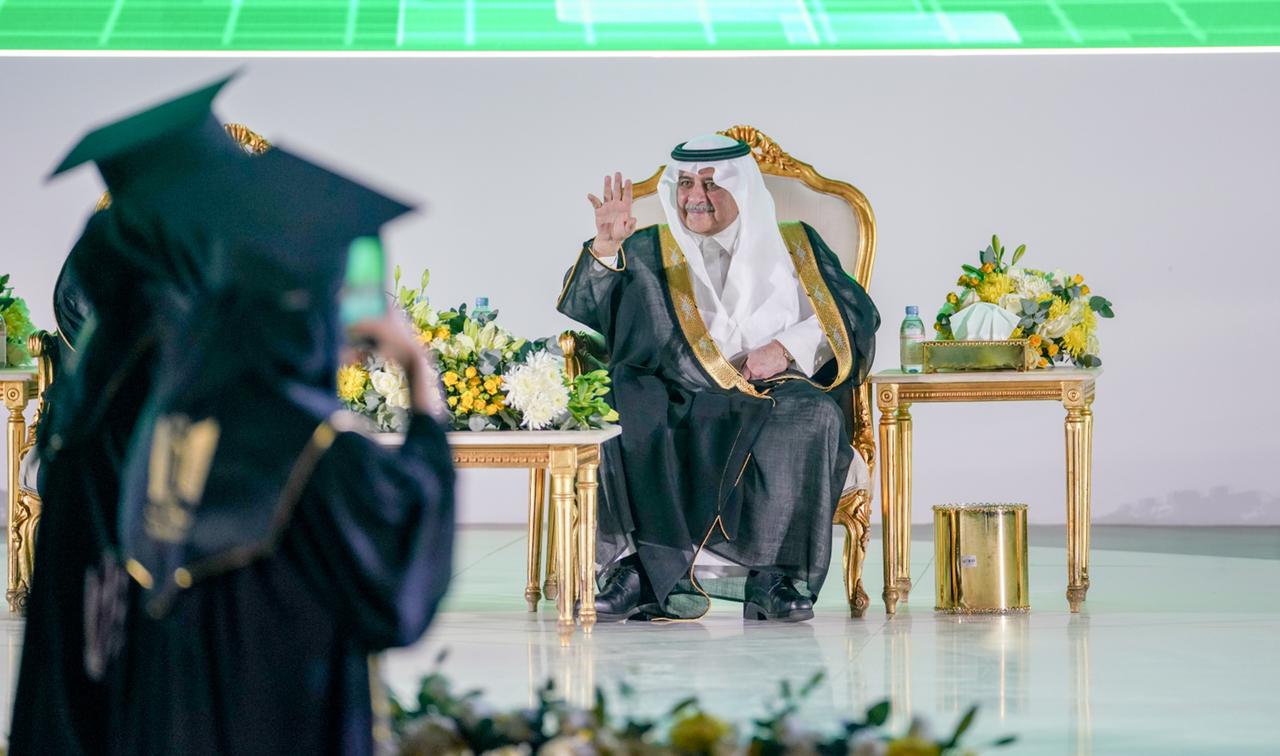 بعد ذلك سلم سمو أمير منطقة تبوك شهادات التخرج لأوائل الخريجين والخريجات من مختلف التخصصات, مهنئاً سموه الجميع وقال سموه في تصريح صحفي : مبروك للوطن ولأبنائنا وبناتنا الخريجين والخريجات، ومبروك لأولياء أمورهم ومعلميهم وجامعاتهم، وهم الآن وصلوا لمرحلة العمل وتحقيق الطموح والحلم، وبإذن الله أحلامهم تتحقق ويشرفون بلدهم، وأنا فخور بهم جداً، سائلاً سموه الله لهم بالتوفيق والنجاح في مستقبلهم.
