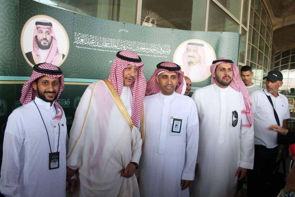 ودّع سفير خادم الحرمين الشريفين لدى الأردن نايف بن بندر السديري، في مطار الملكة علياء الدولي بالعاصمة عمّان، مساء اليوم الدفعة الأولى من ضيوف خادم الحرمين الشريفين حجاج دولة فلسطين من ذوي الشهداء والاسرى والجرحى الفلسطنيين واسرهم والبالغ اجمالي عددهم 1000 حاج وحاجة.