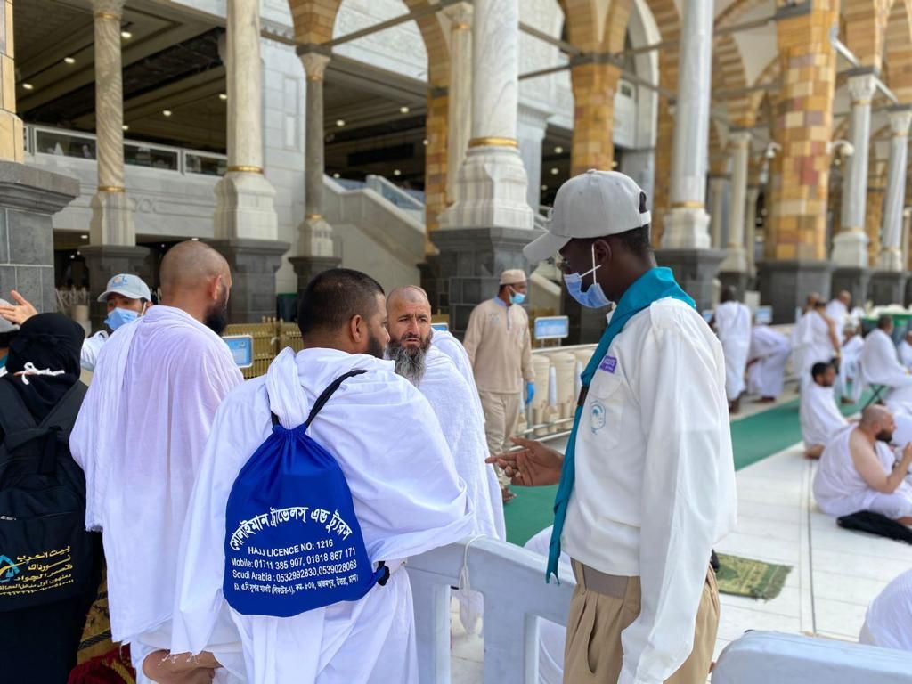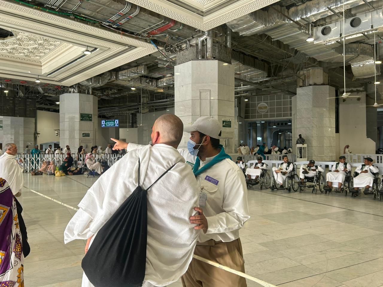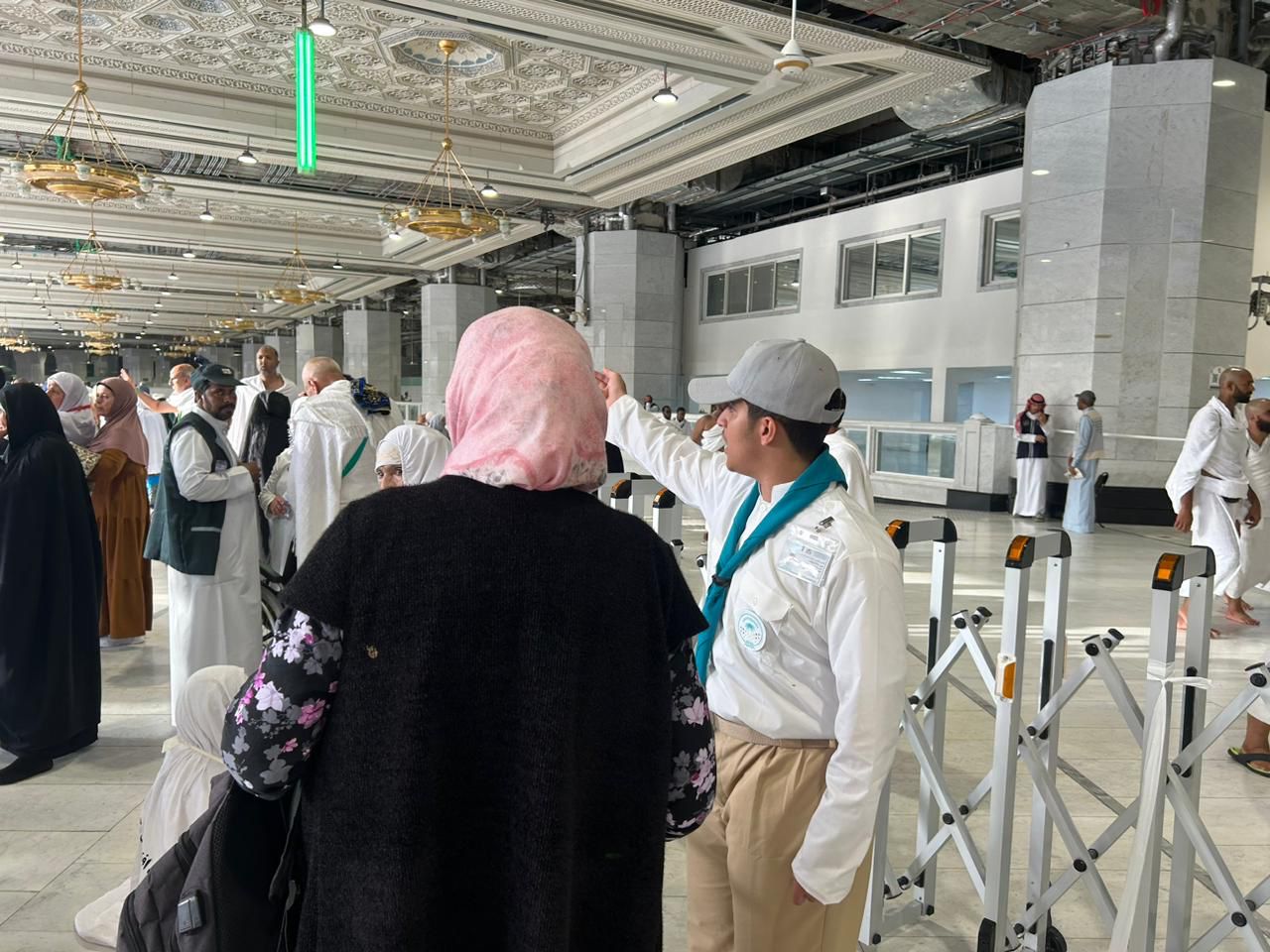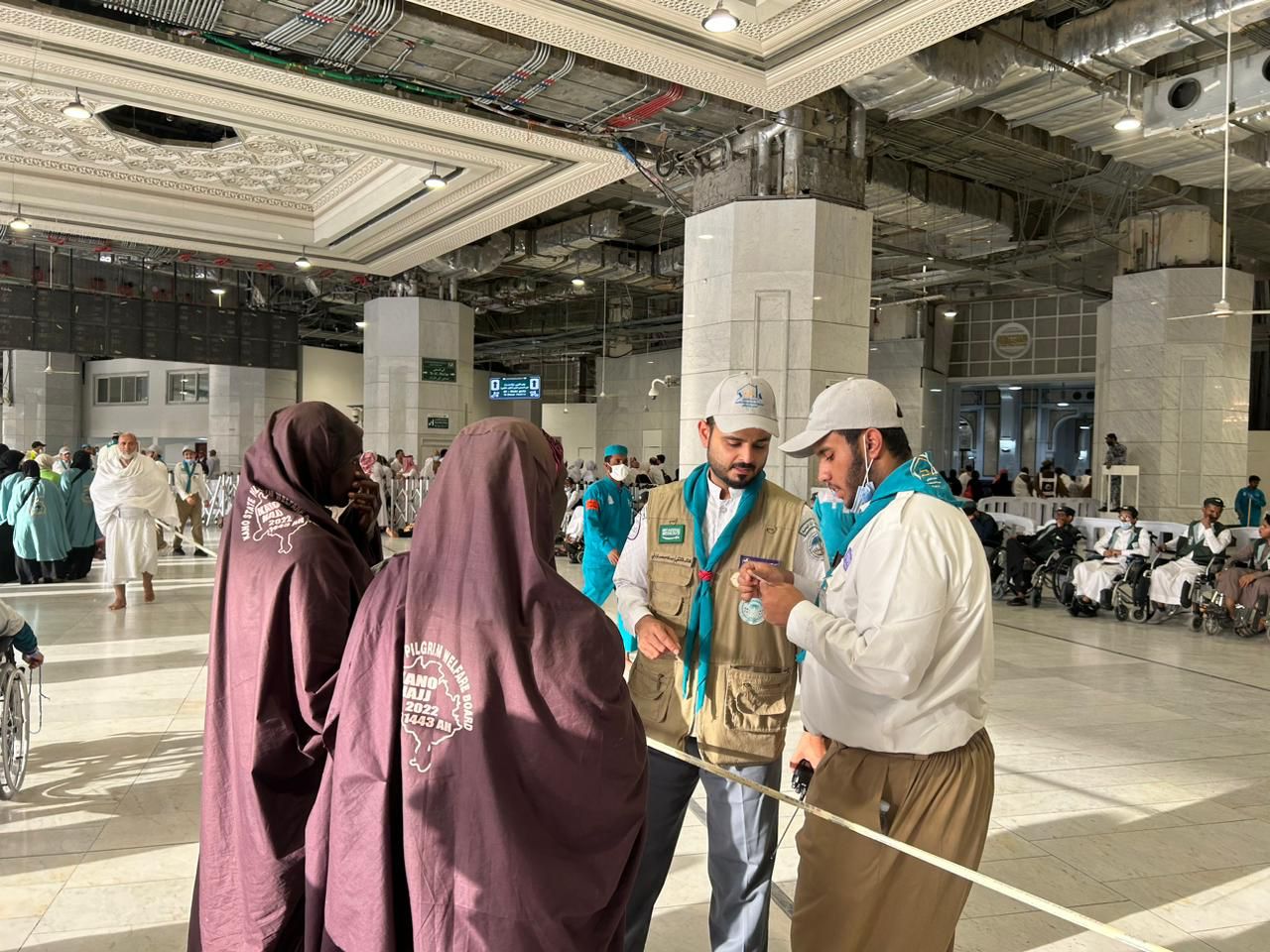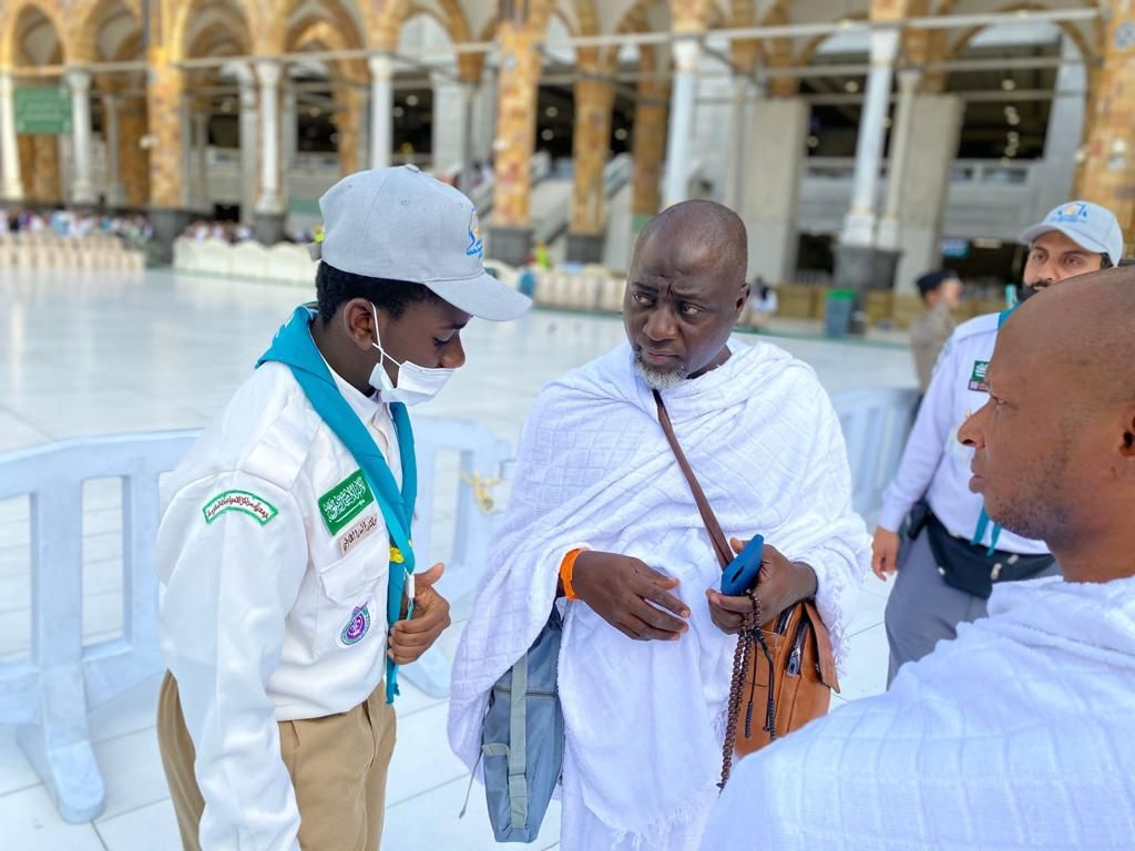 ويقوم أفراد الكشافة المنتشرين في مواقع مختلفة داخل المسجد الحرام بأعمال الإرشاد والتوجيه والمساعدة في وصول الحاج للأماكن المخصصة للصلاة و الأدوار العلوية وكذلك أقرب الطرق للوصول للسكن أو مواقع الحافلات