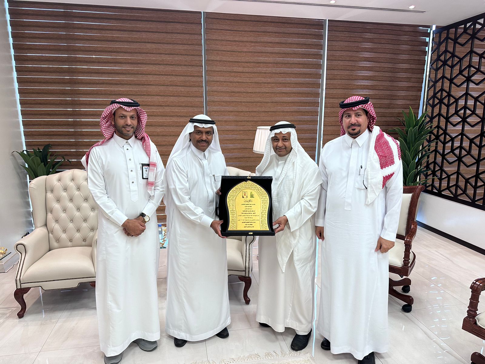 وفي نهاية اللقاء قدم مدير الفرع درع تذكاري لمعالي نائب وزير الحج والعمرة، بهذه المناسبة المباركة.