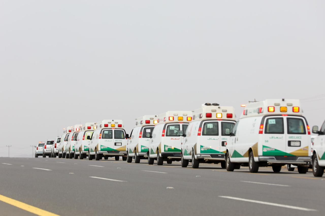 وأوضحت الوزارة أن القافلة تضم اسطول متكامل مكون من ( 16 ) سيارة إسعاف مزودة بجميع التجهيزات الطبية المتكاملة، مع تواجد فريق طبي متخصص مكون من 83 ممارس متخصص (أطباء وتمريض ومسعفين ) إلى جانب 4 سيارات إسعاف متمركزة على طريق الهجرة بين المدينة المنورة ومكة المكرمة ، وسيارتي إسعافات العناية المركزة إضافة إلى 5 اسعافات مساندة و كابينة أوكسجين متكاملة، وورشة إسعافات متنقلة وحافلة لنقل مرافقي المرضى.