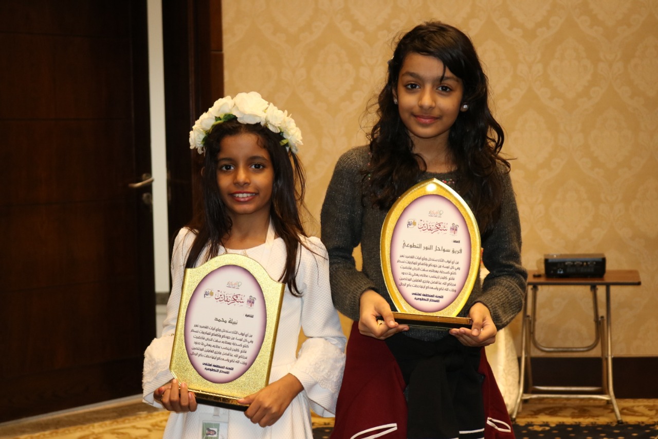 ثم جاءت كلمة جمعية مراكز الأحياء بمكة القاها الاستاذ عبدالله الزهراني مساعد الامين لشؤون مراكز الأحياء بالعاصمة المقدسة أشاد بالملتقى وشكر القائمين عليه واكد على دعم المراكز لكل الأنشطة الاجتماعية ، ثم كان هناك انشودة للطفلة مهرة باجعفر ، من فريق سواحل النور تلاها قصيدتين شعرية جميلة للشاعرة الصغيرة نبيلة محمد ايضا من فريق سواحل النور التطوعي نالت التصفيق والاستحسان عليها .