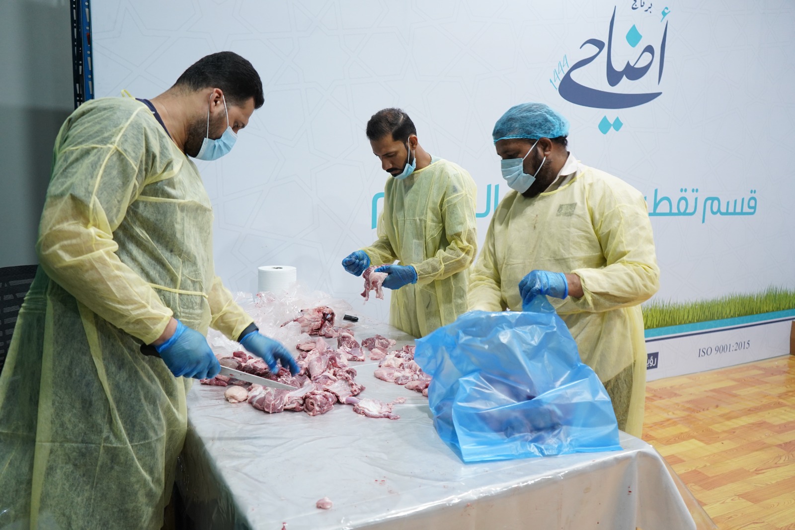 64 متطوعا قدموا 2144 ساعة في توزيع اللحوم