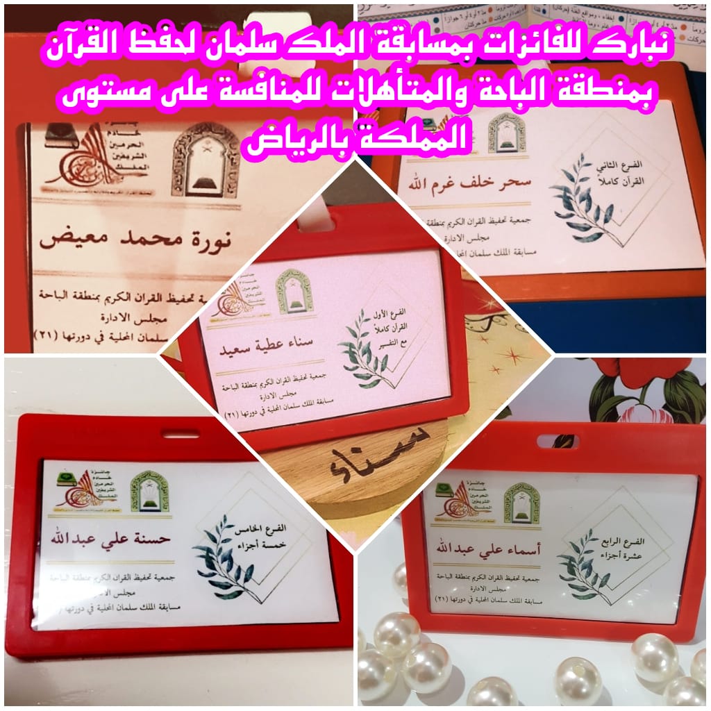 أقامت جمعية تحفيظ القرآن الكريم بمنطقة الباحة المسابقة الختامية لجائزة خادم الحرمين الشريفين الملك سلمان بن عبدالعزيز( حفظه الله) لحفظ القرآن الكريم للبنات في دورتها 21 يوم الاحد ٢٤_٣_١٤٤٠ على مسرح ادارة التعليم للبنات