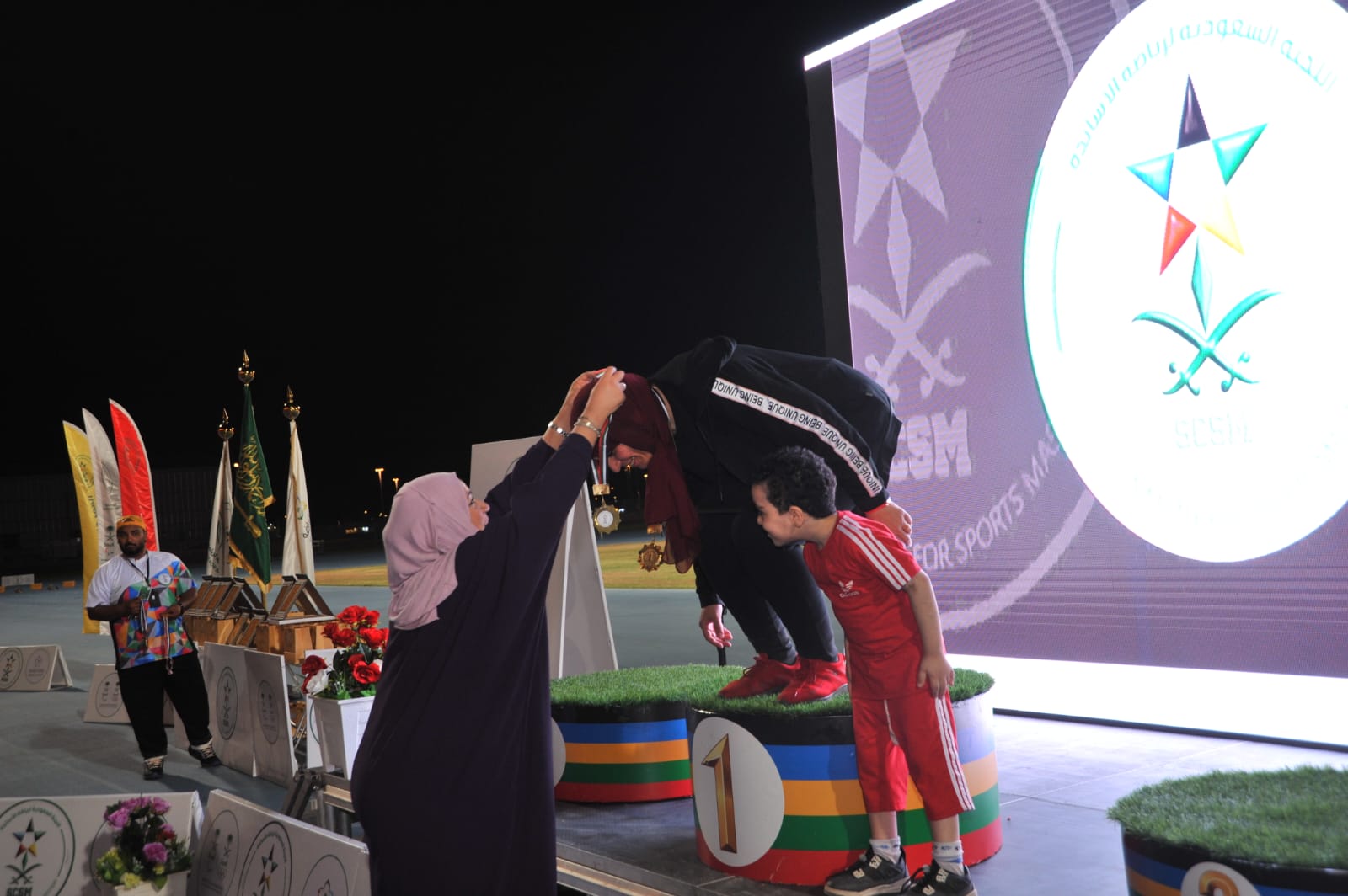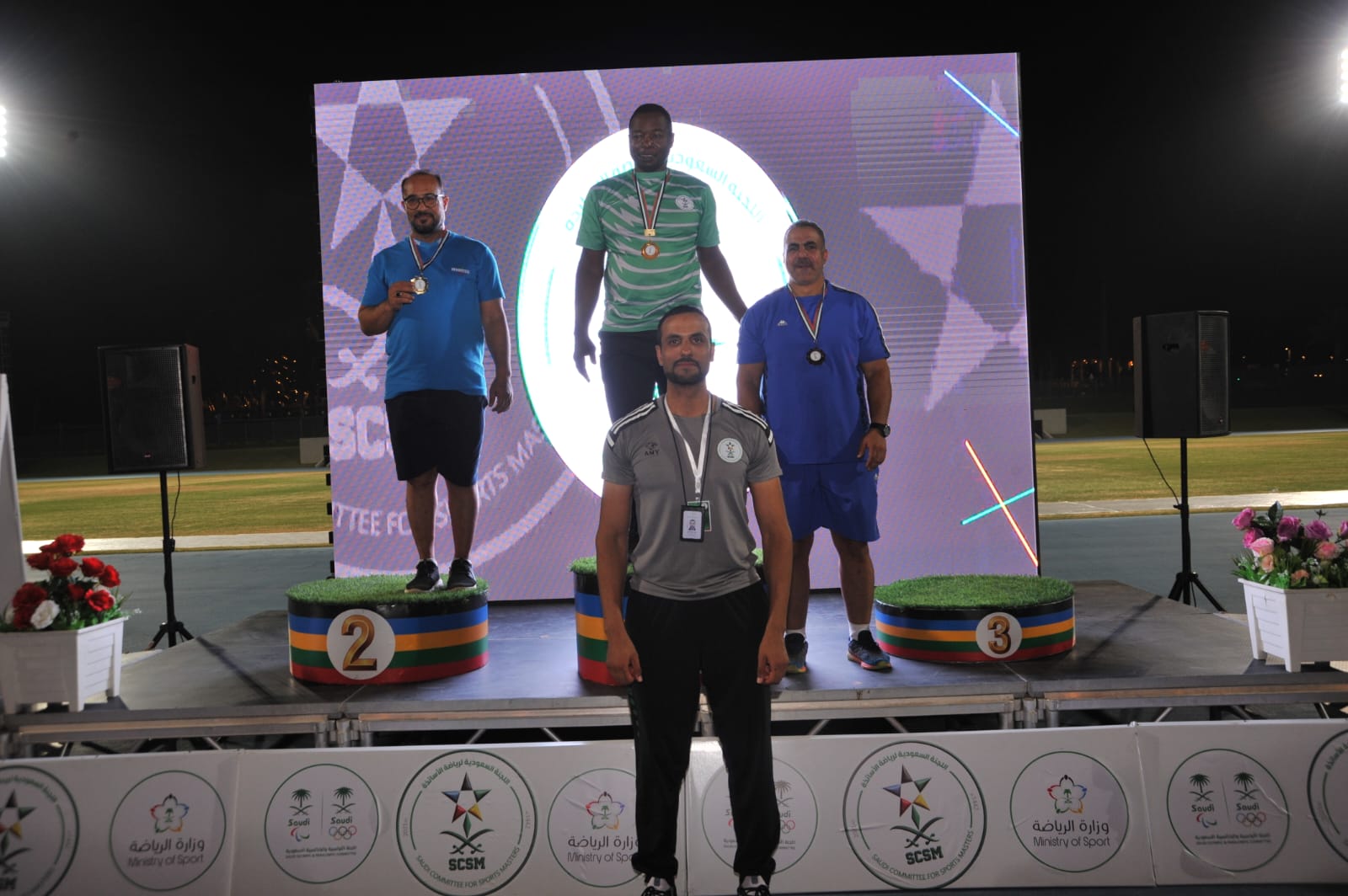 وذلك بحضور ومشاركة رئيس اللجنة السعودية لرياضة الأساتذة الأستاذ سالم الأحمدي في الوثب الطويل والثلاثي .