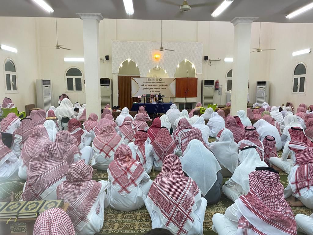 واختتم فضيلته بذكر النعم الجليلة التي نحن عليها في هذه البلاد المباركة التي يقود سفينتها خادم الحرمين الشريفين الملك سلمان بن عبد العزيز الذي يدعم دائماً مجالس العلم والعلماء ويدعو إلى تكثيفها وحضورها لأنها الطريق الوحيد الذي يحمي المجتمع من الوقوع في براثن الفتن ما ظهر منها وبطن ويسانده في ذلك ولي عهده الأمين صاحب السمو الملكي الأمير محمد بن سلمان بن عبد العزيز فالحمد لله على نعمة السعودية ودعى أيضاً الجميع إلى التعاضد والتكاتف والوقوف جنباً إلى جنب مع ولاة الأمر ، وأكد على أن معالي الوزير الشيخ الدكتور عبد اللطيف بن عبد العزيز آل الشيخ دائما ما يدعو إلى تكثيف الدورات العلمية لنشر الوسطية والاعتدال وبيان أحكام الشريعة الإسلامية سواء كانت فقهية أو عقدية .