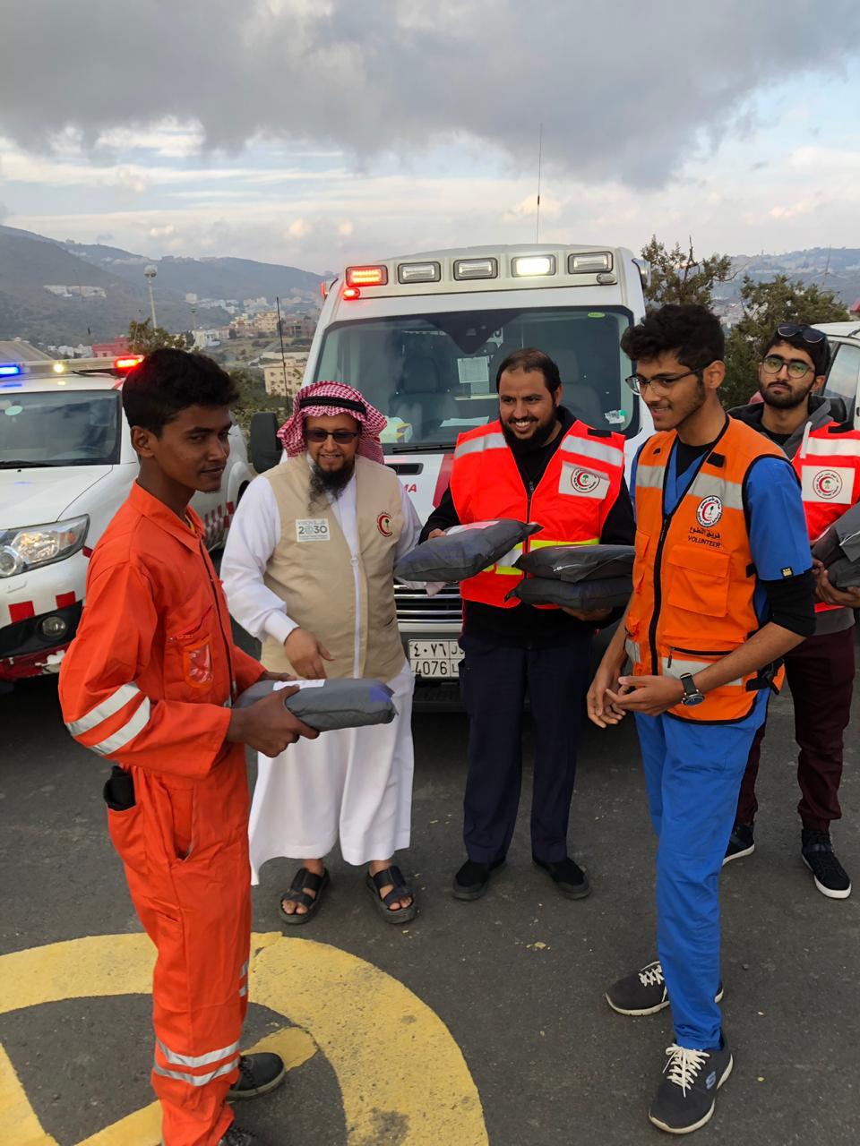 و كان ختام الفعاليات ليوم التطوع قيام عدد من المتطوعين بتوزيع كسوة الشتاء لعدد من العاملين بقسم النظافة بأمانة الباحة بمشاركة مدير عام الفرع و مساعدهـ للشئون الإسعافية وعدد من المتطوعين والمسعفين بالهيئة .