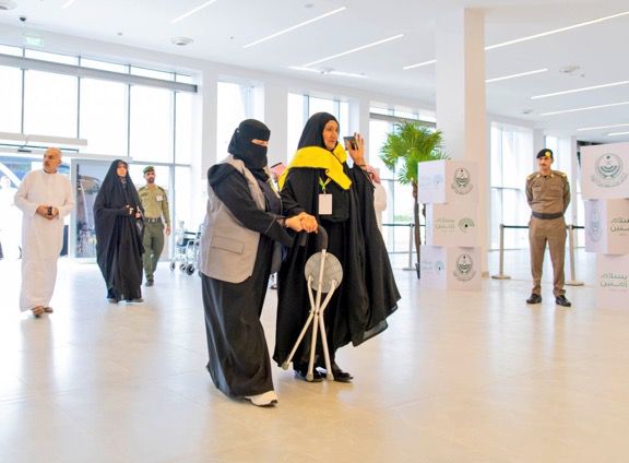 وشاركت الطالبة، عبير سعود الشمري، كمتطوعة خلال موسم الحج 1444 هـ، ضمن فاعليات تنظيم واستقبال وتوديع حجاج بيت الله الحرام القادمين برًا عبر منفذ حديدة عرعر.